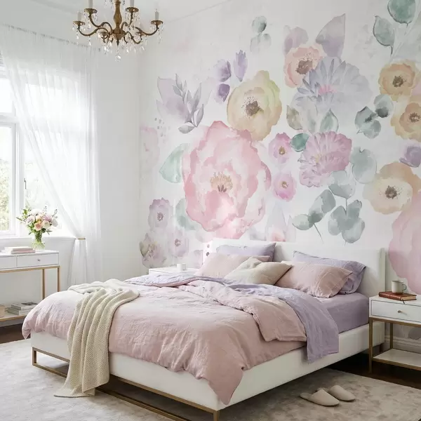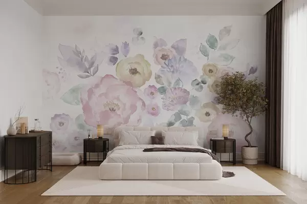 Soft watercolor composition with flowers and leaves - Wall mural (No. w05093)