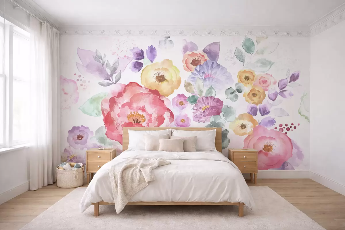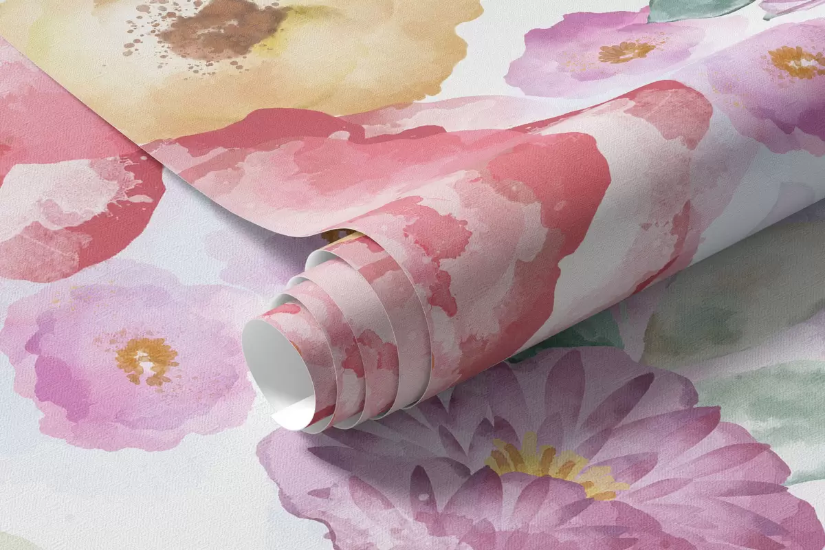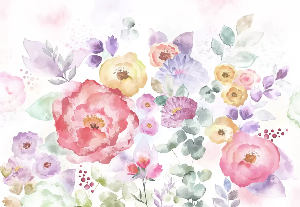 Pastel watercolor flowers on a light background - Wall mural (No. w05093v1)