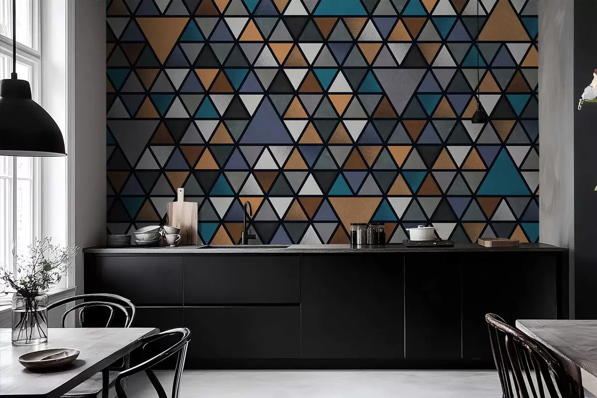Geometric pattern of multicolored triangles - Wall mural (No. w05094)