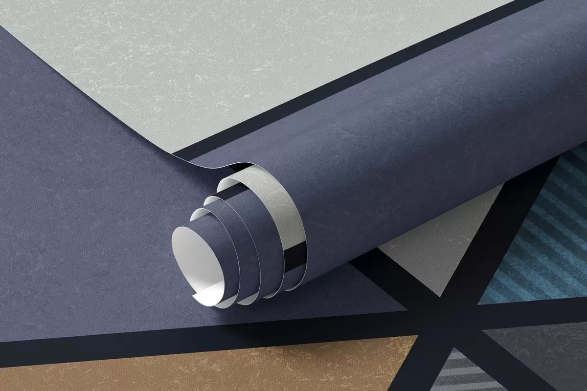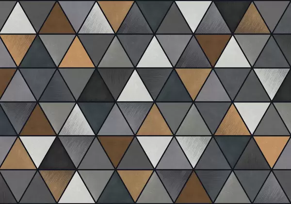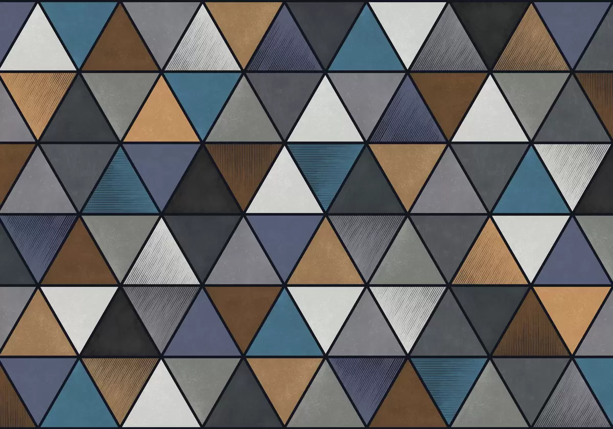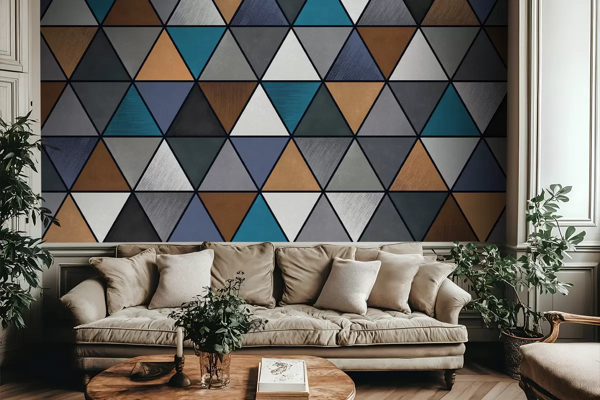 Triangular geometric pattern in blue and warm tones - Wall mural (No. w05095)