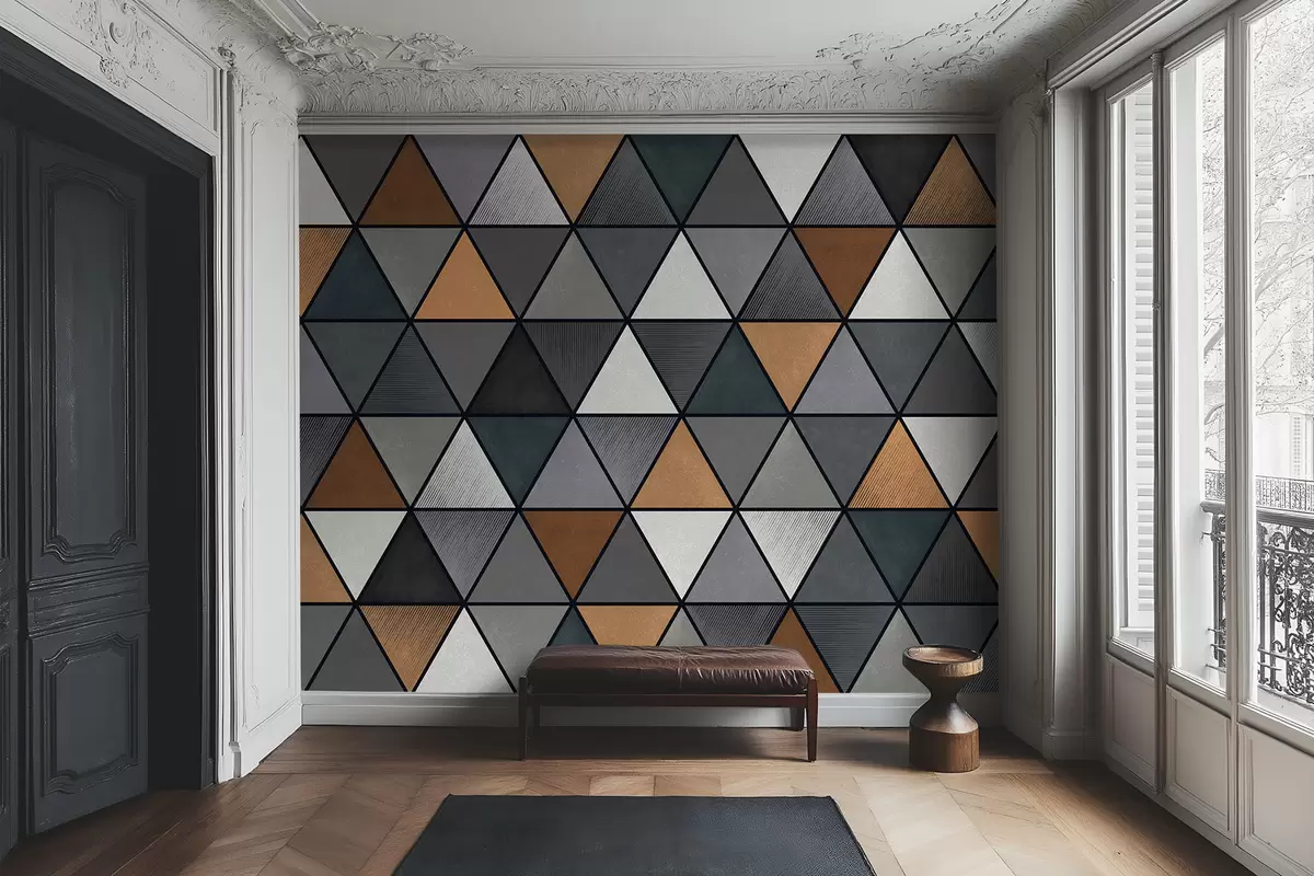 Triangle pattern with gray and warm shades - Wall mural (No. w05095v1)