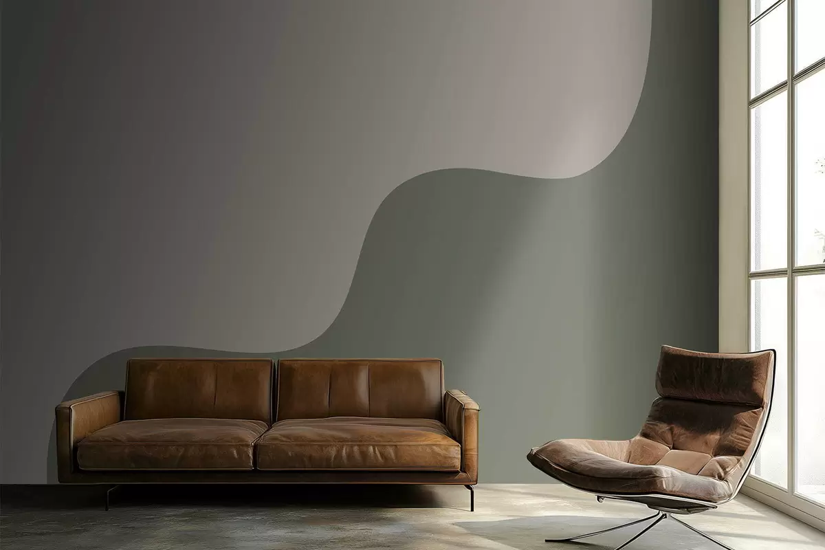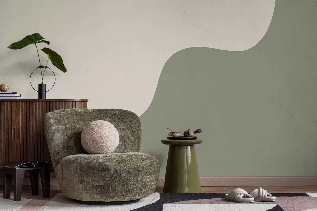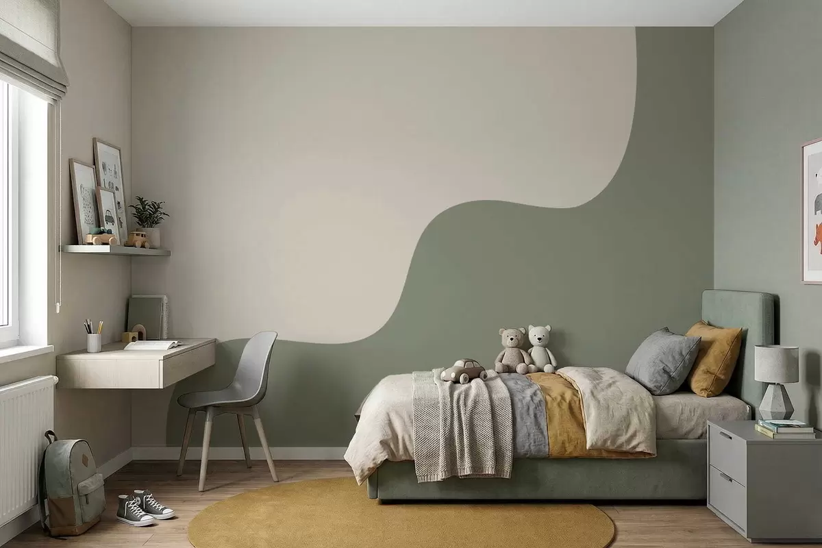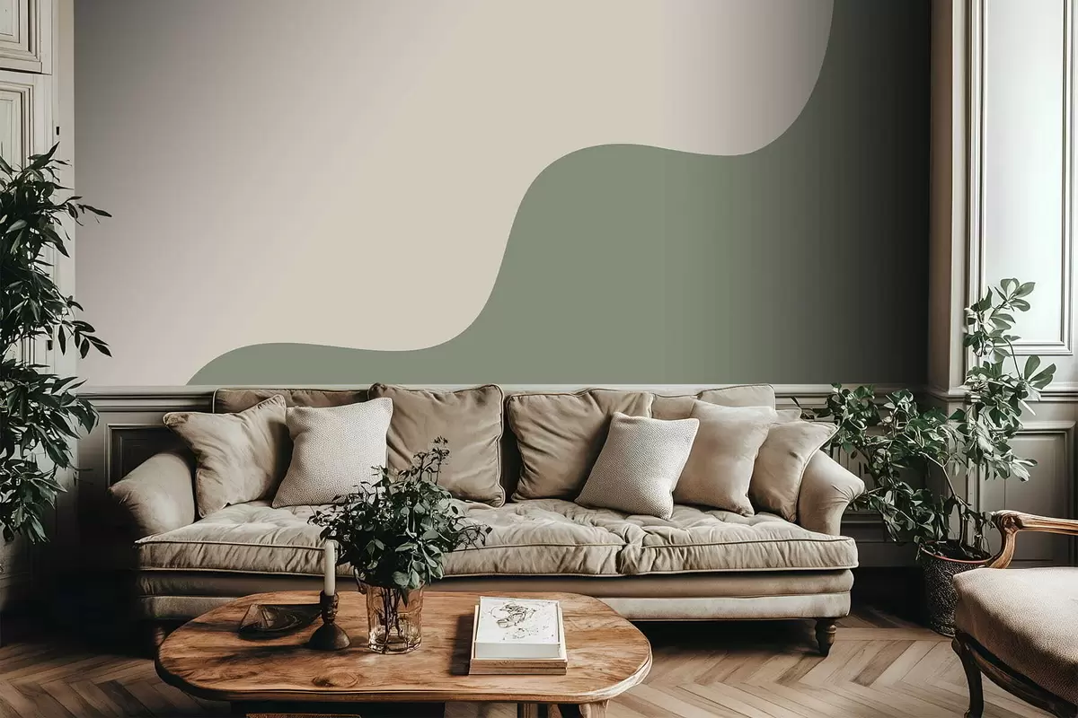 Smooth abstract shapes in light beige and green shades - Wall mural (No. w05097)