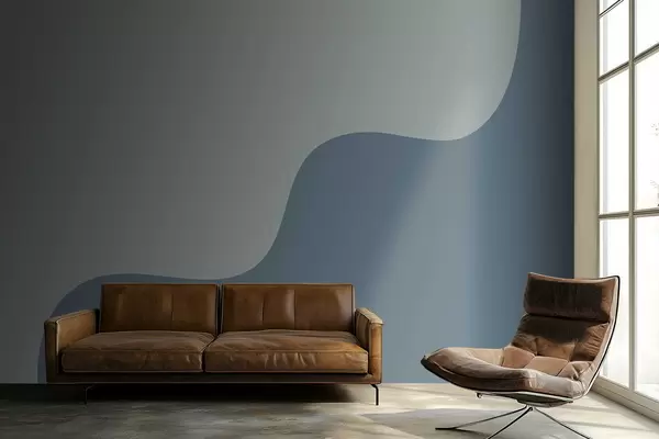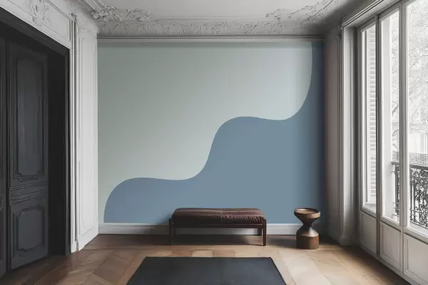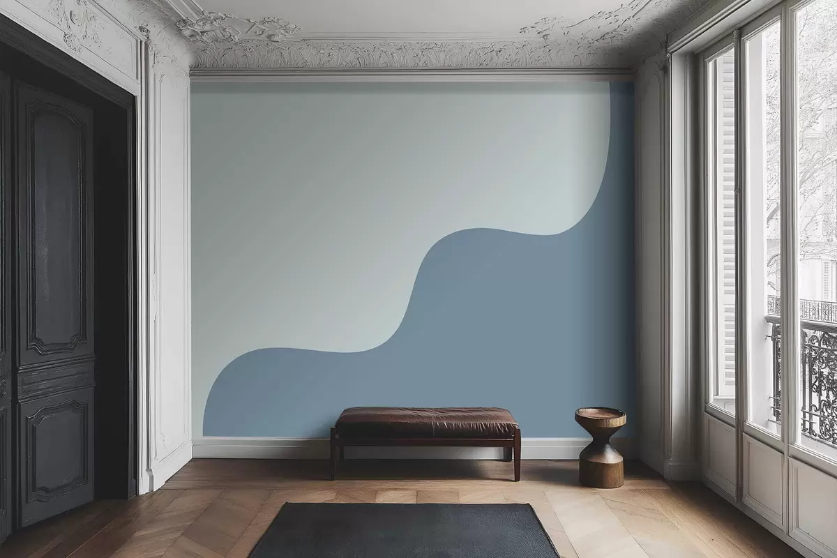 Smooth abstract shapes in light blue and blue tones - Wall mural (No. w05097v1)