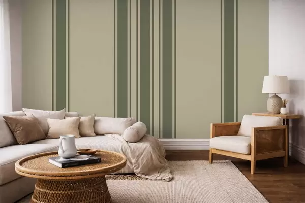 Vertical stripes in muted green and beige palette - Wall mural (No. w05098)