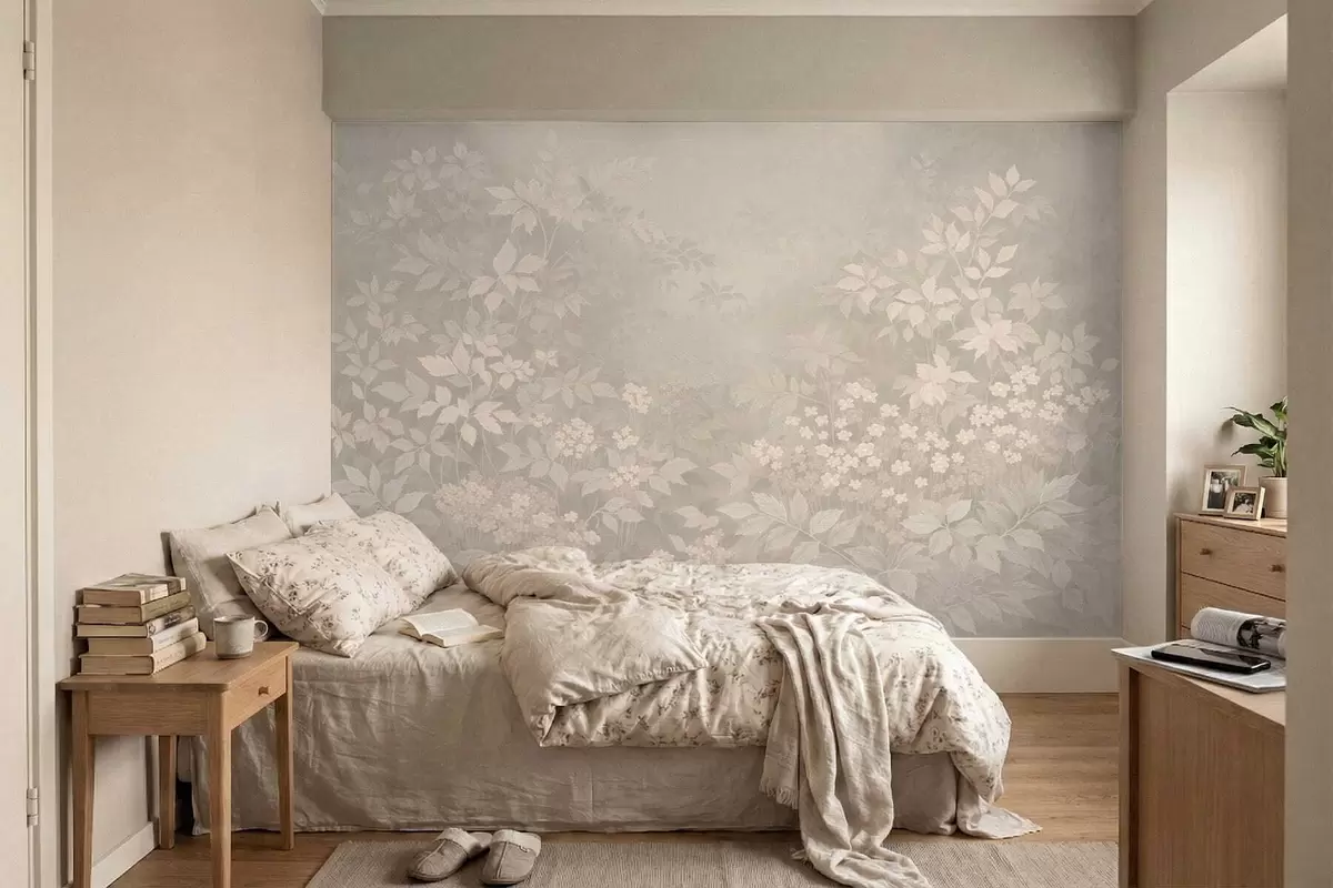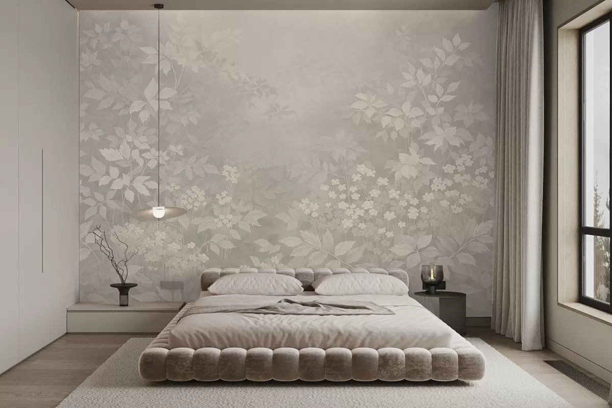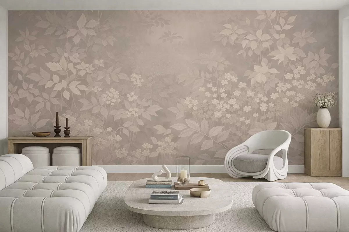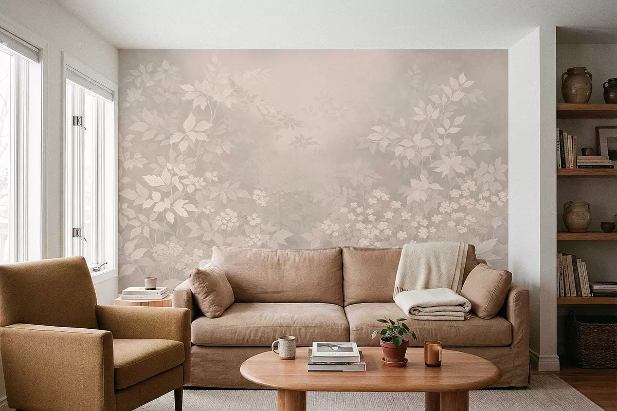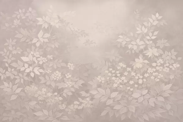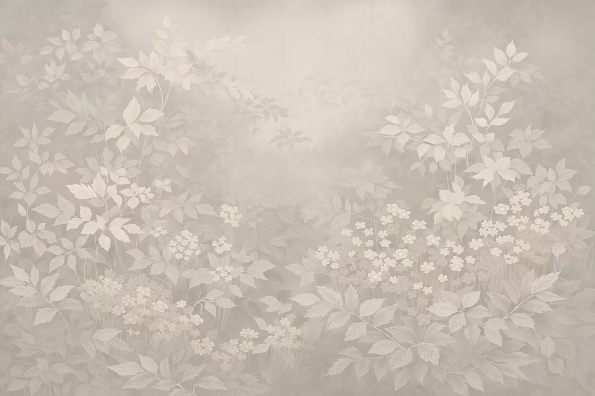 Soft botanical pattern with leaves and flowers in mist - Wall mural (No. w05115v1)