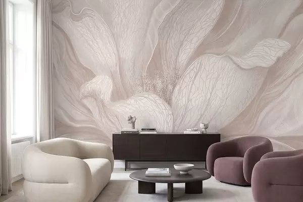 Abstract flower in light beige tones - Wall mural (No. w05119)