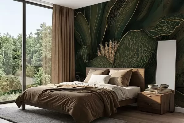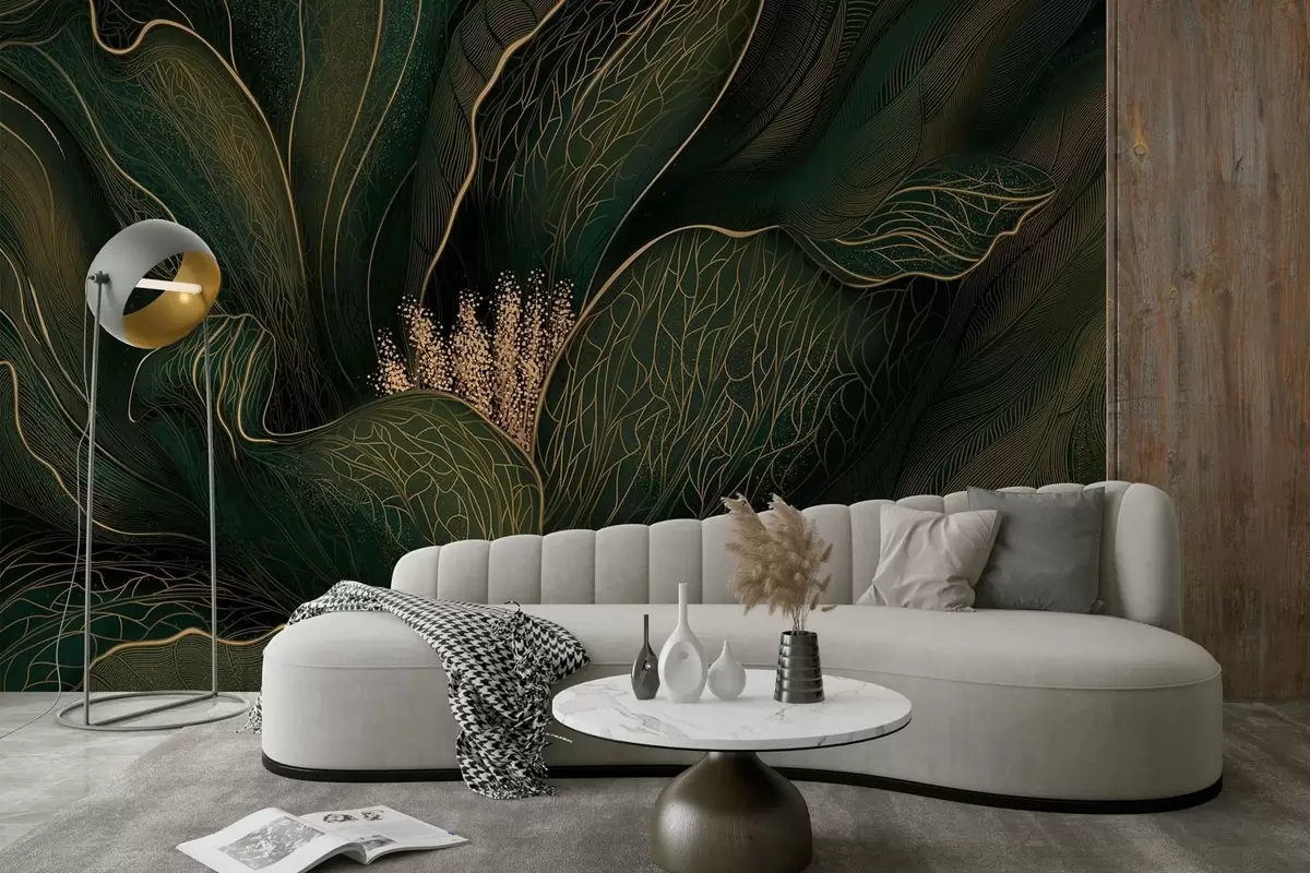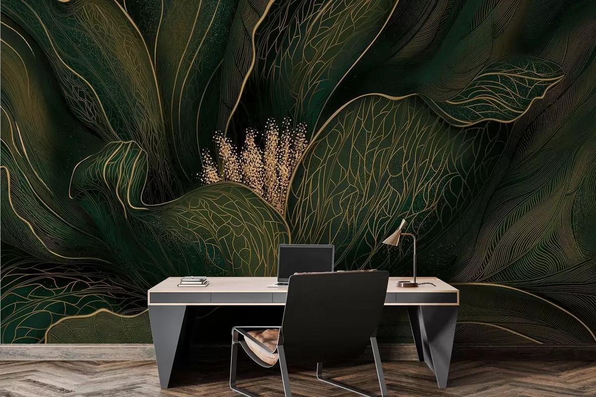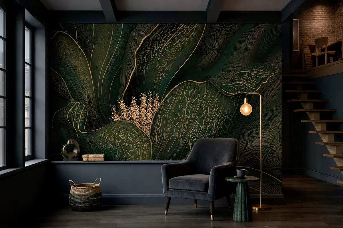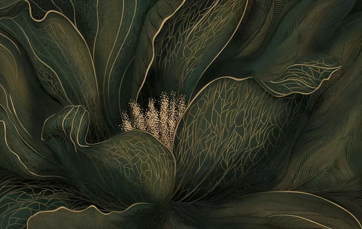 Dark green abstract flower with fine line details - Wall mural (No. w05119v1)