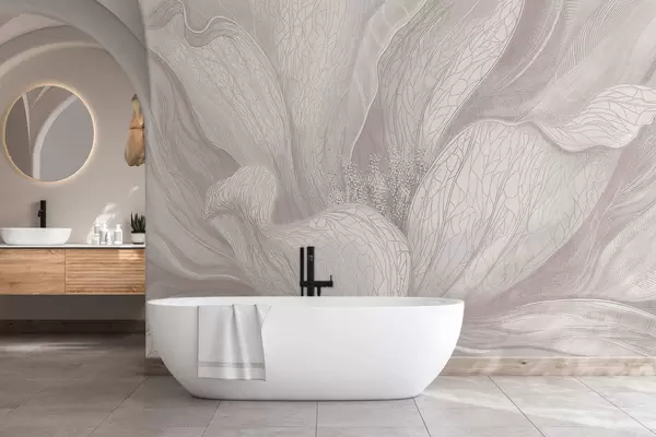 Light abstract flower with flowing lines - Wall mural (No. w05119v3)