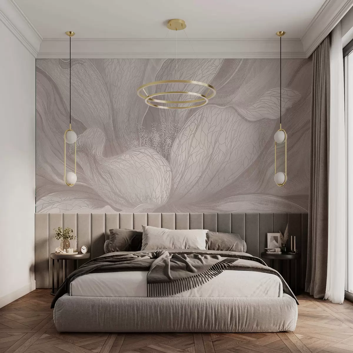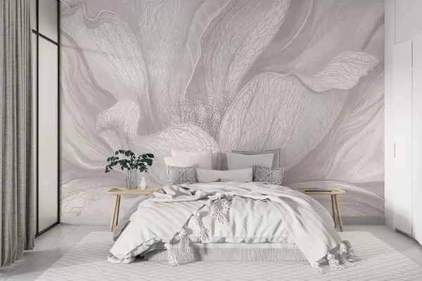 Light abstract flower with flowing lines - Wall mural (No. w05119v3)