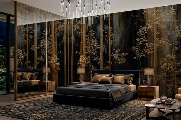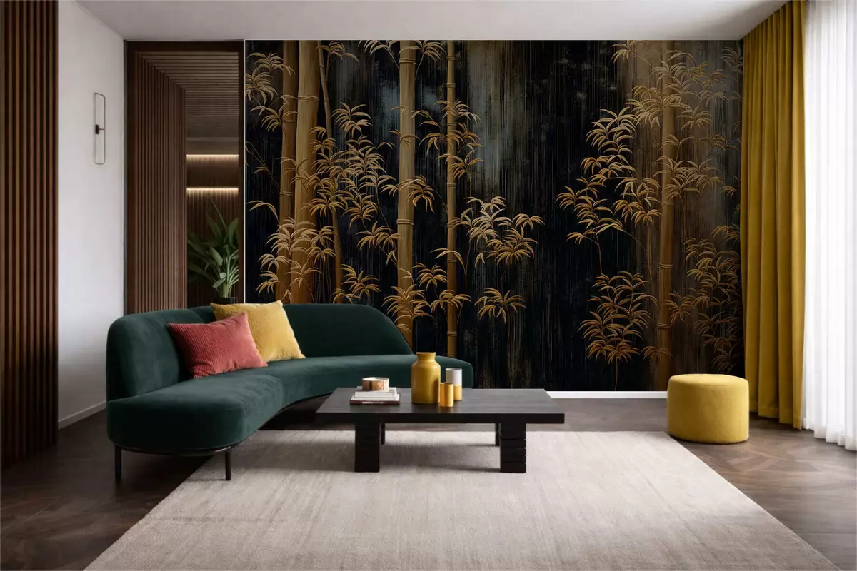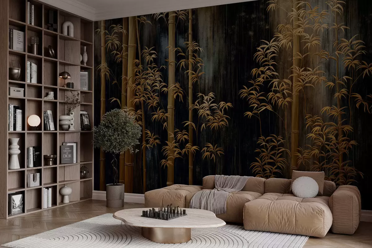 Dark bamboo on black background - Wall mural (No. w05120)