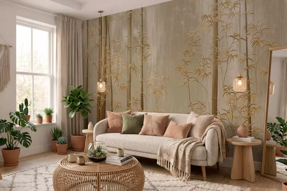 Beige bamboo with thin stems - Wall mural (No. w05120v2)