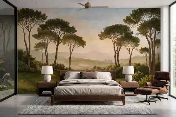 Landscape with trees in warm sunset light - Wall mural (No. w05122)