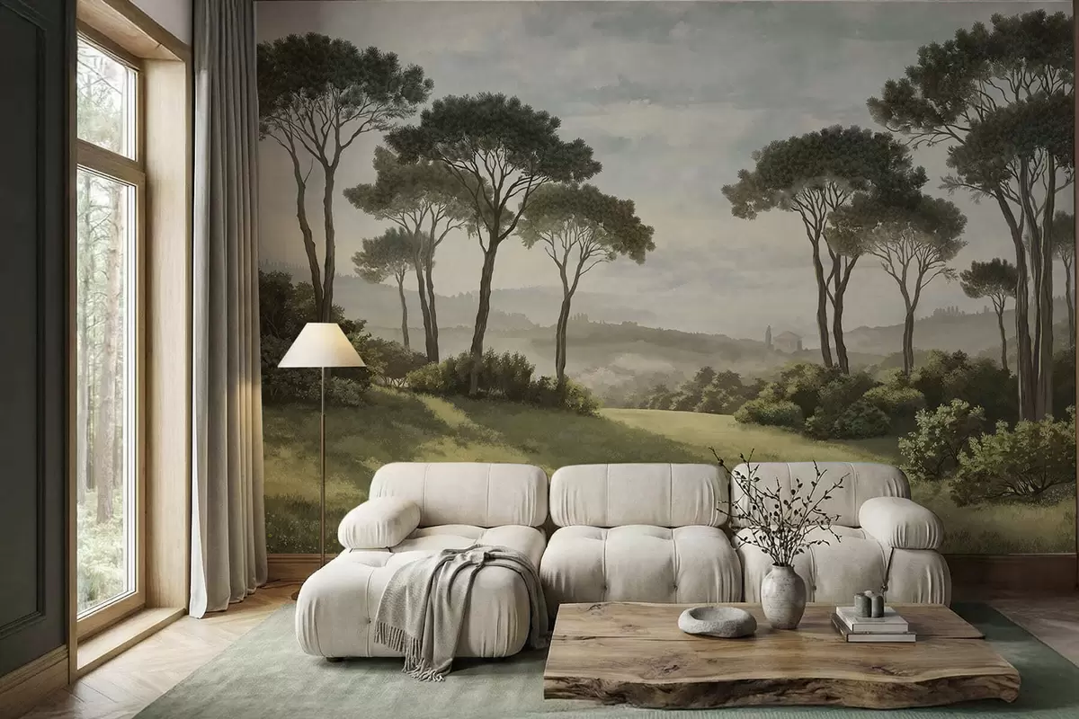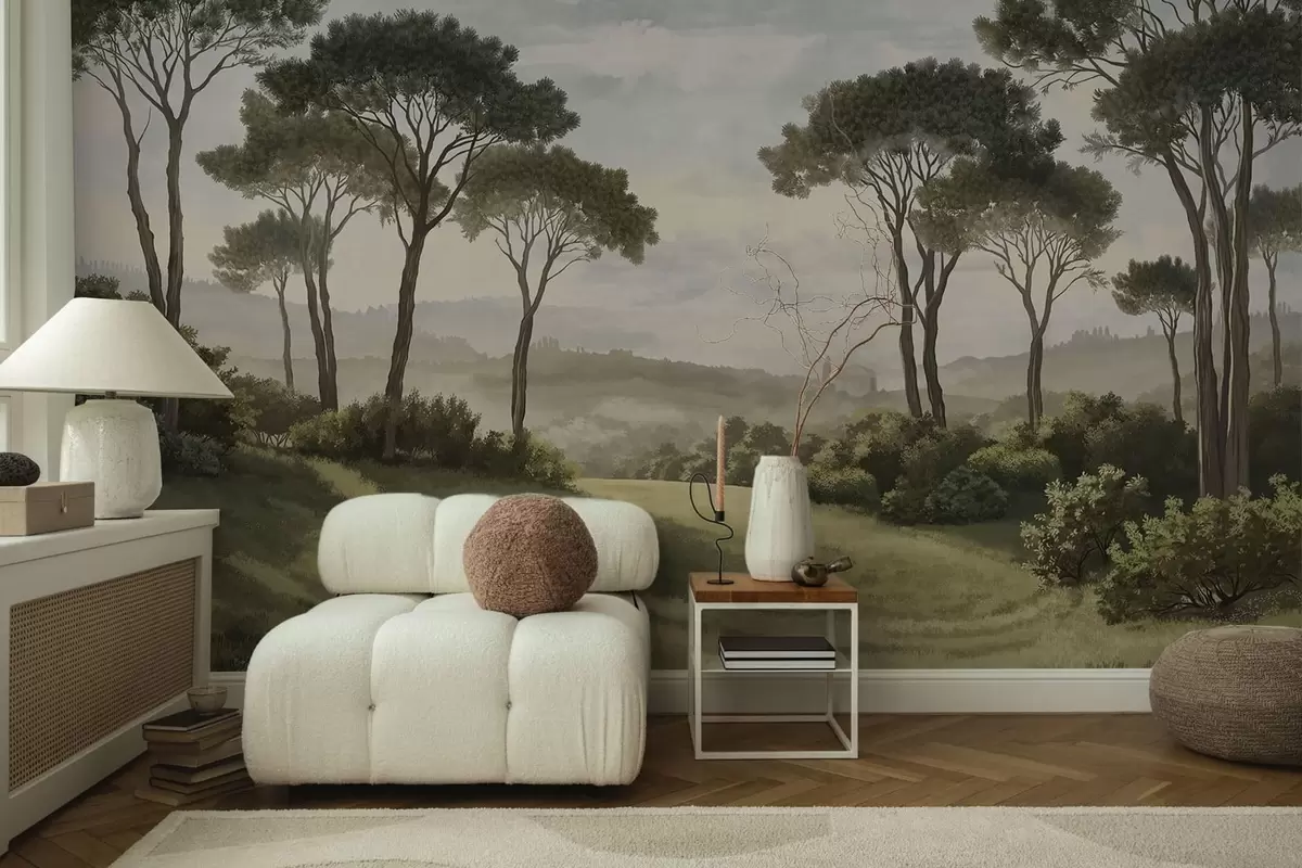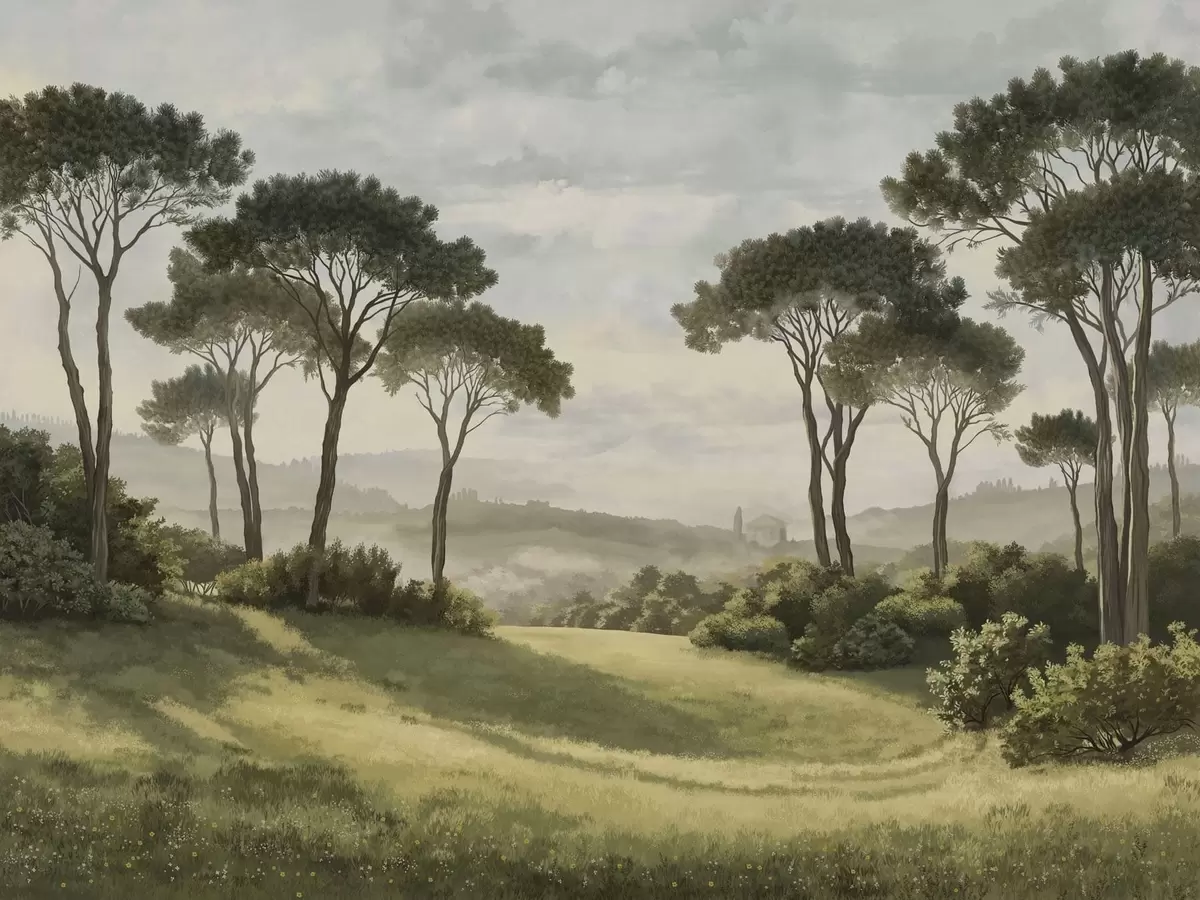 Landscape with trees, meadow and distant mist - Wall mural (No. w05122v1)