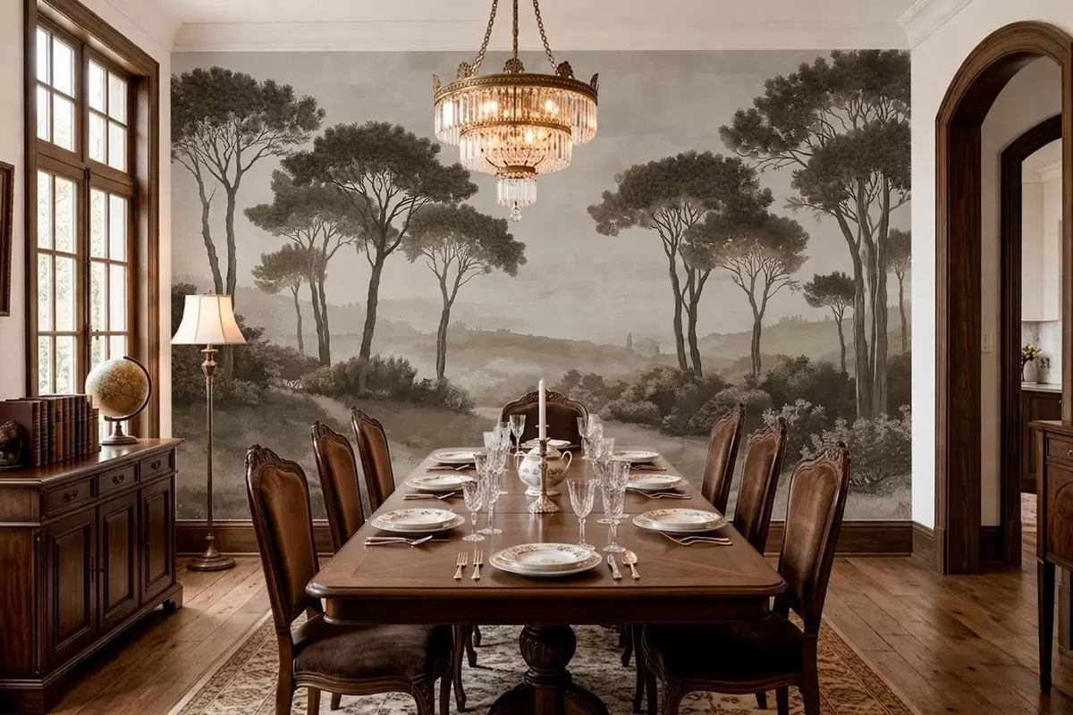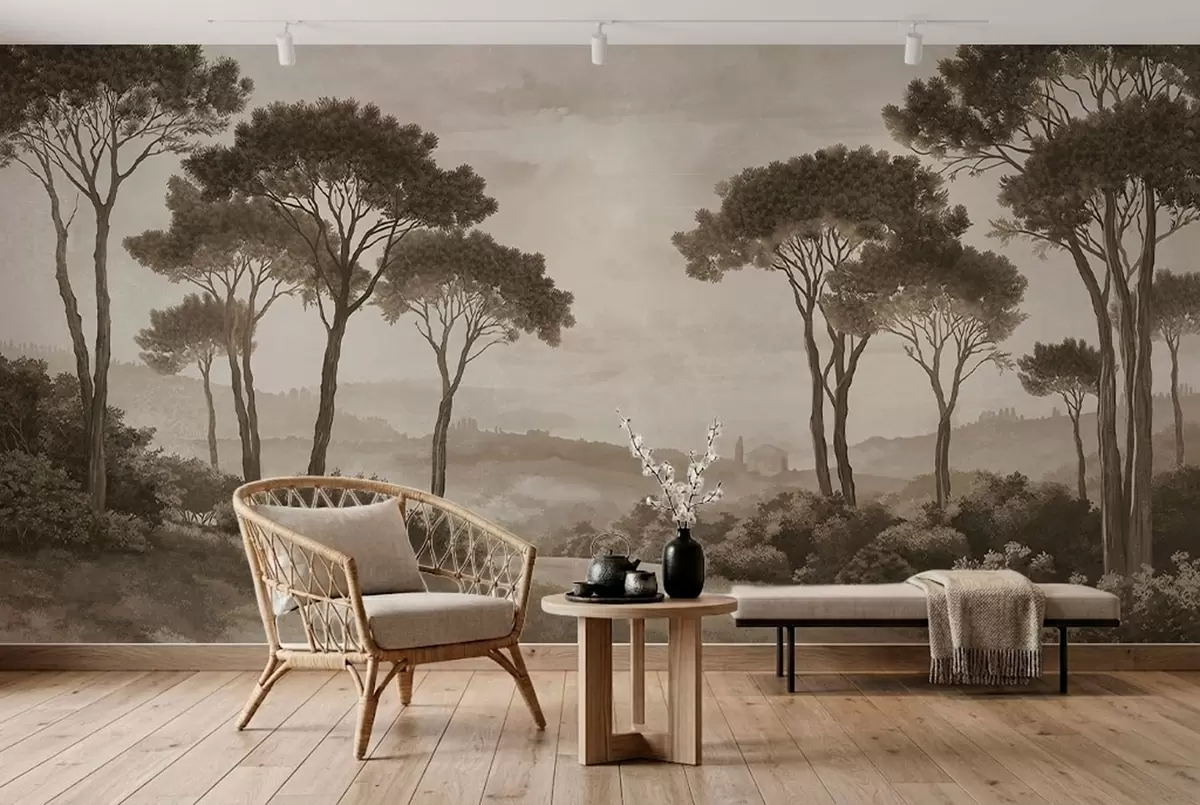 Landscape with trees in vintage sepia tone - Wall mural (No. w05122v2)