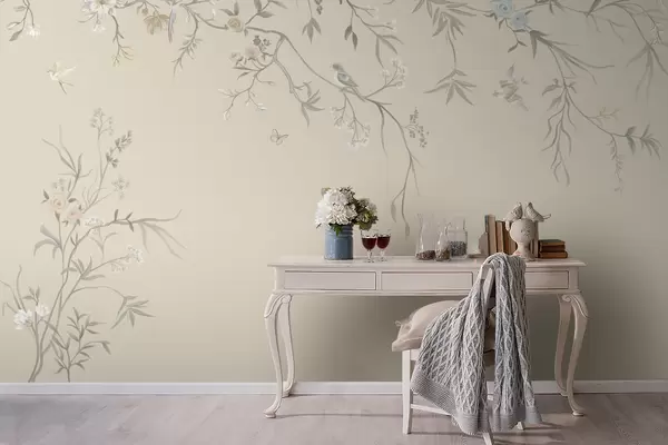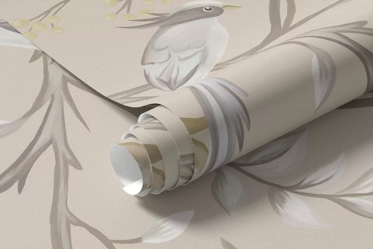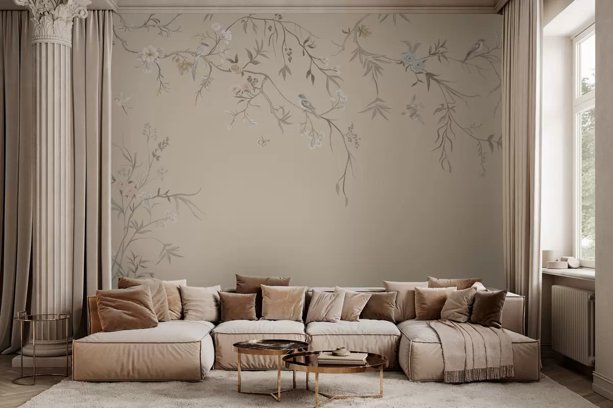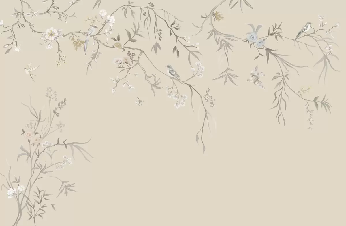 Light flowers and birds on a pastel background - Wall mural (No. w05127v2)