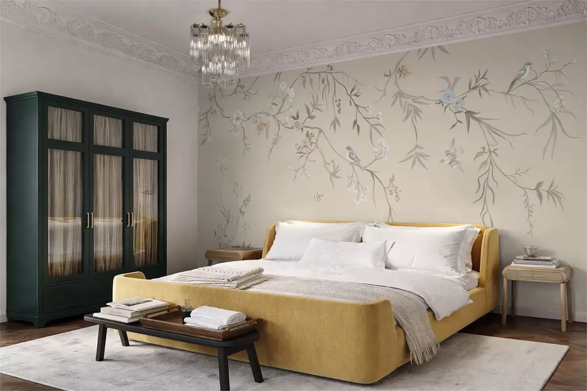 It also makes cleaning easier — you can wipe varnished wallpaper with a damp sponge.