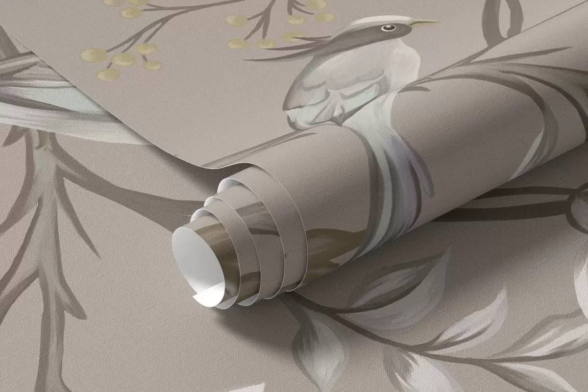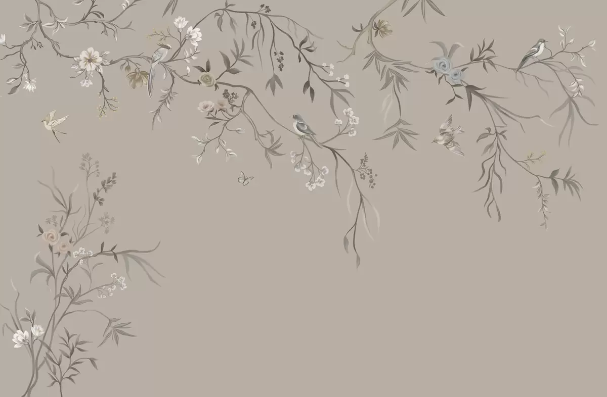 Floral ornament with birds on neutral background - Wall mural (No. w05127v3)