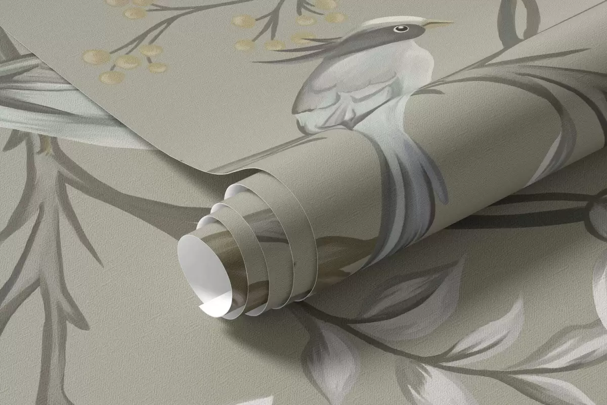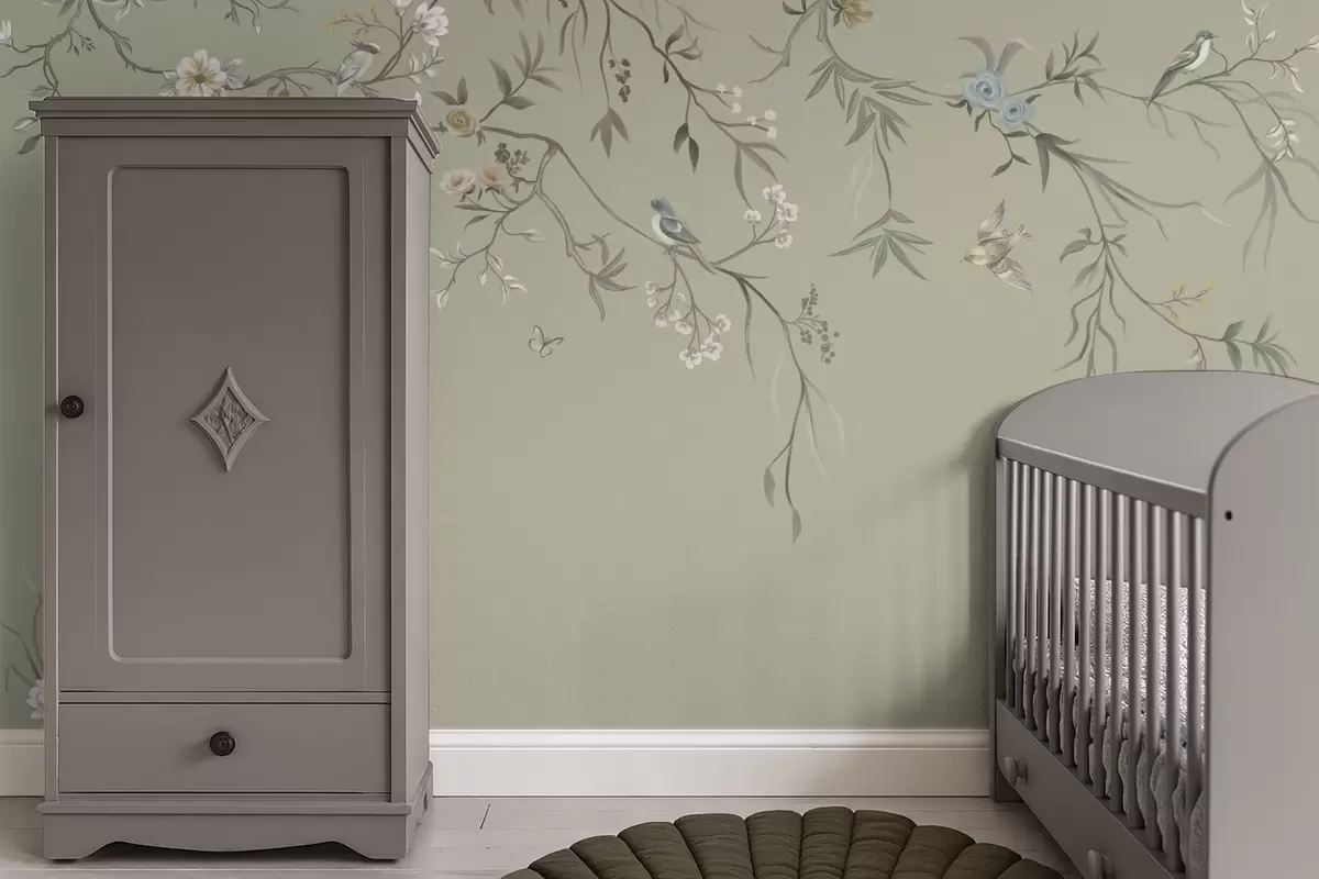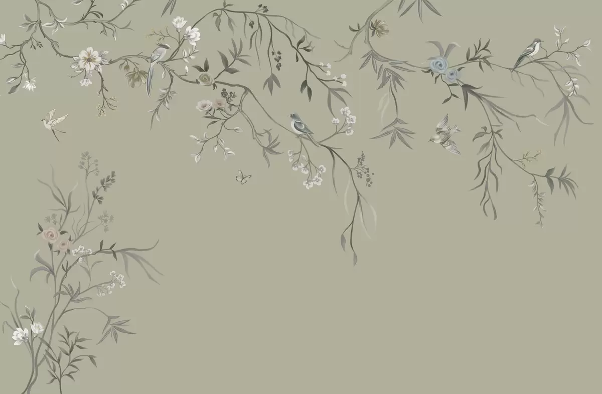 Floral pattern with birds on cool background - Wall mural (No. w05127v6)