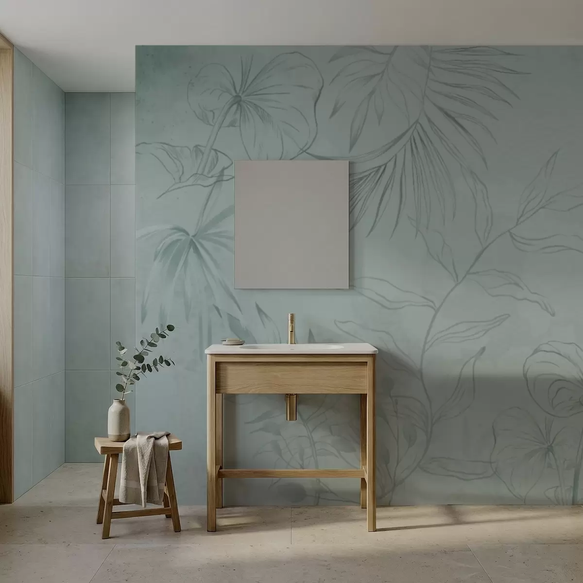 Linear plants on soft greenish background - Wall mural (No. w05128v1)
