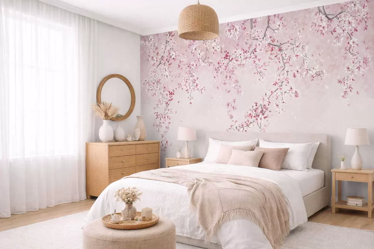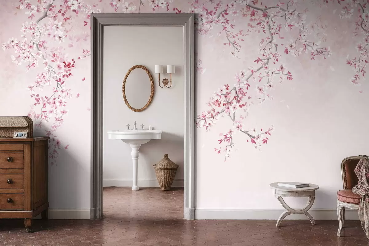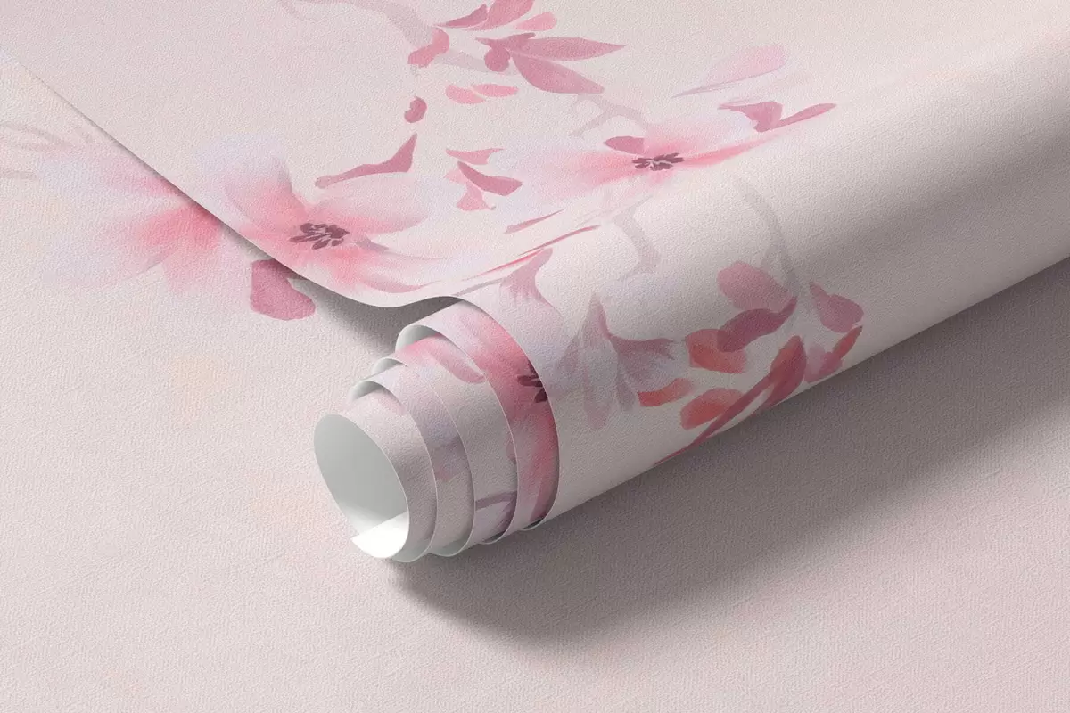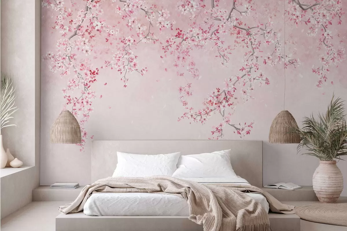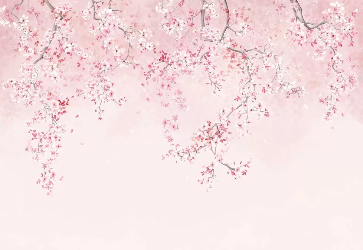 Branches with pink blossoms on a soft pastel background - Wall mural (No. w05129v1)