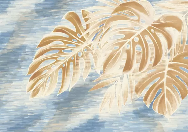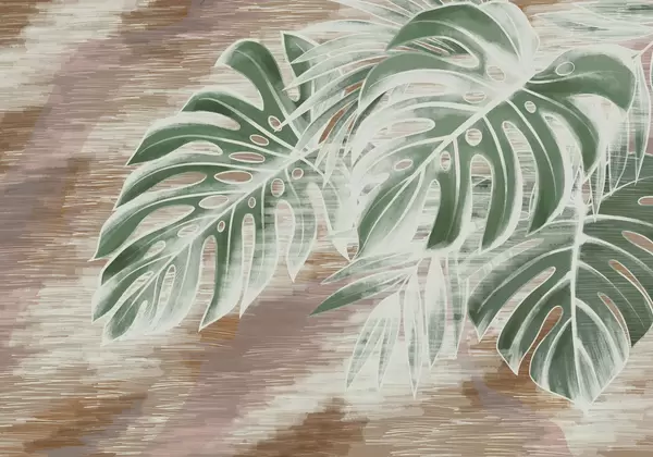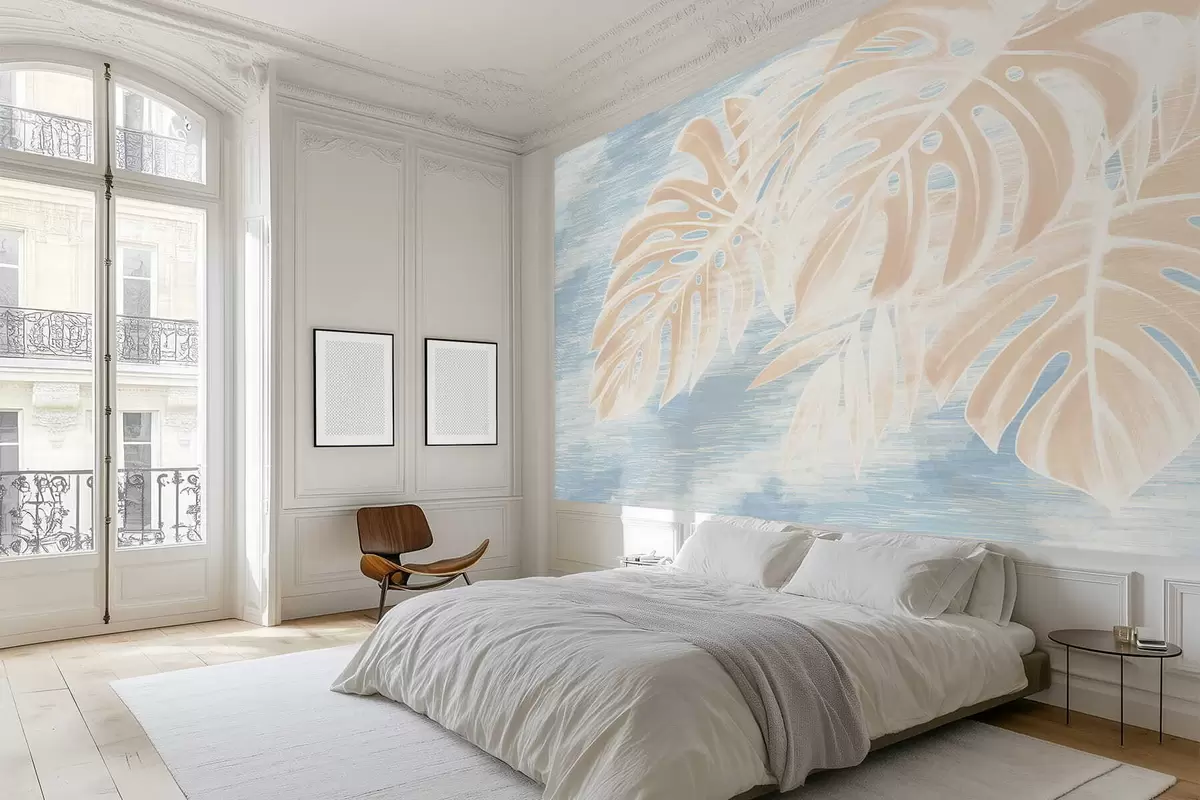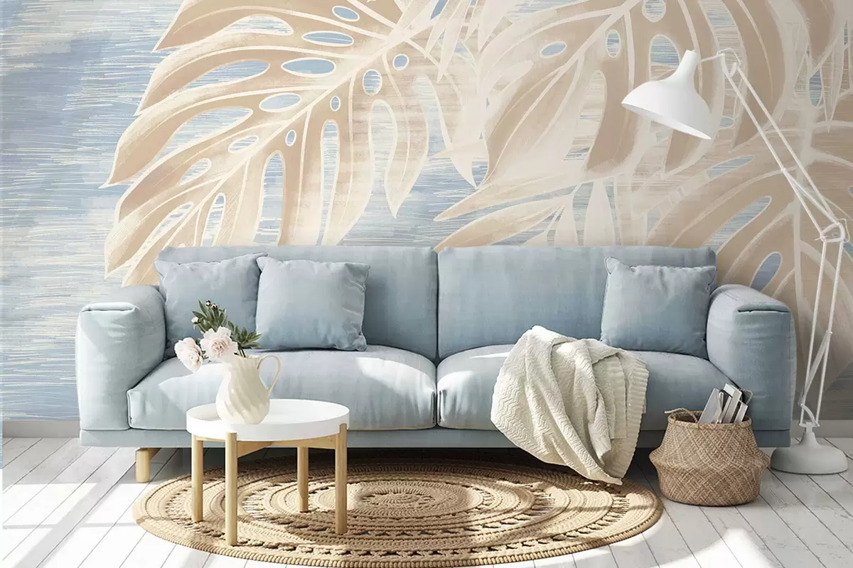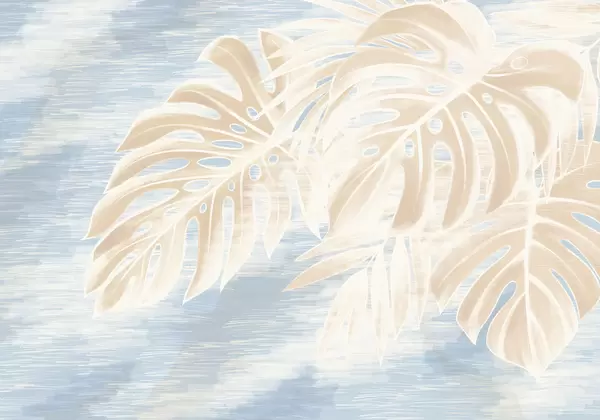 Abstract leaves in warm beige tones on a light background - Wall mural (No. w05130)