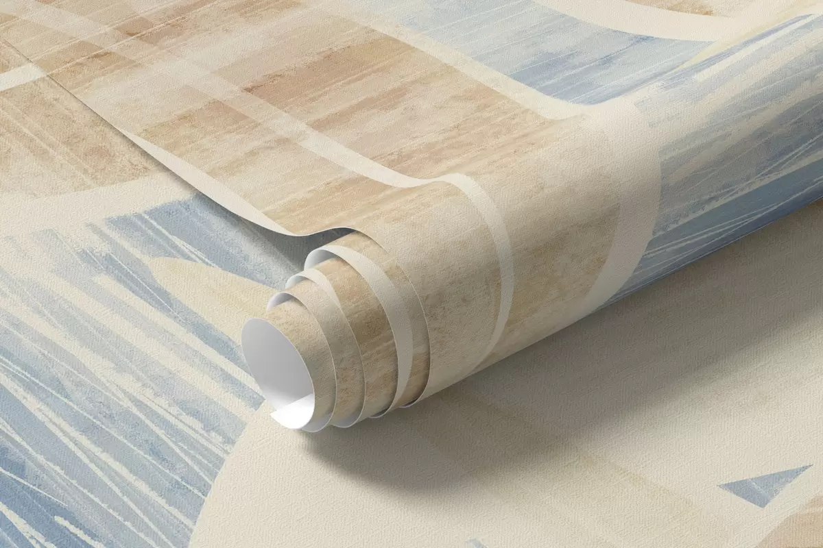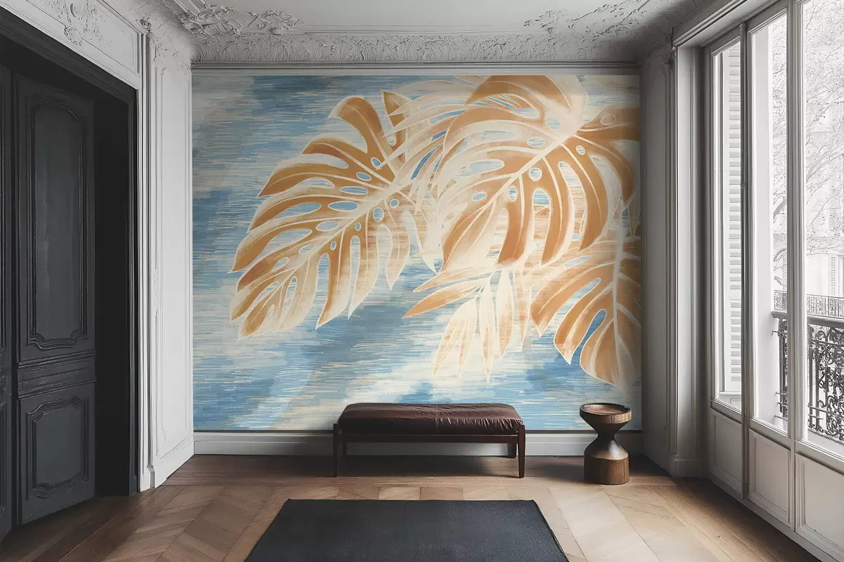 Leaves in light sandy tones on a blue background - Wall mural (No. w05130v1)