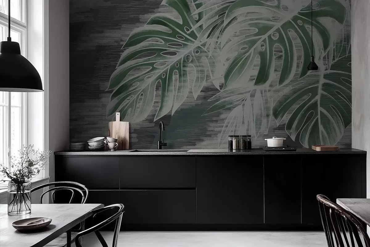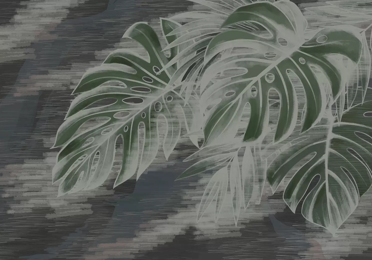 Dark green leaves on a textured dark background - Wall mural (No. w05130v4)