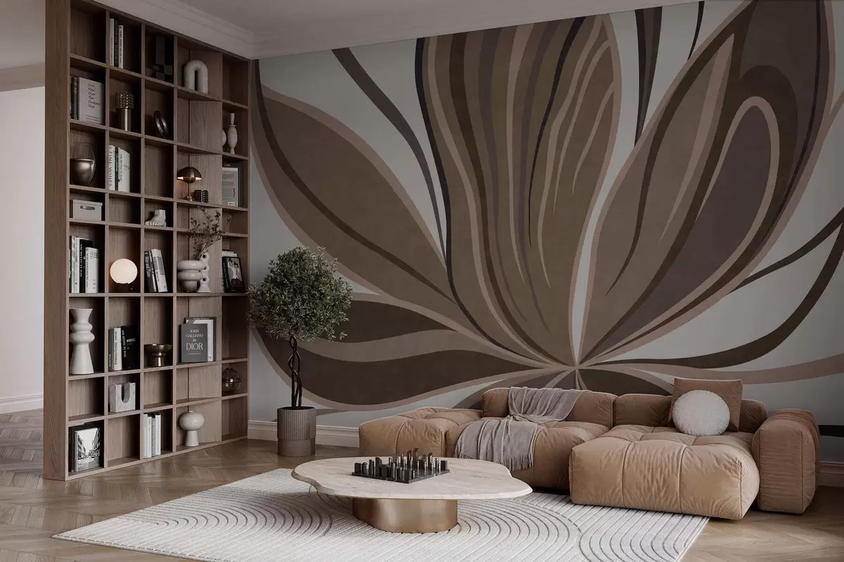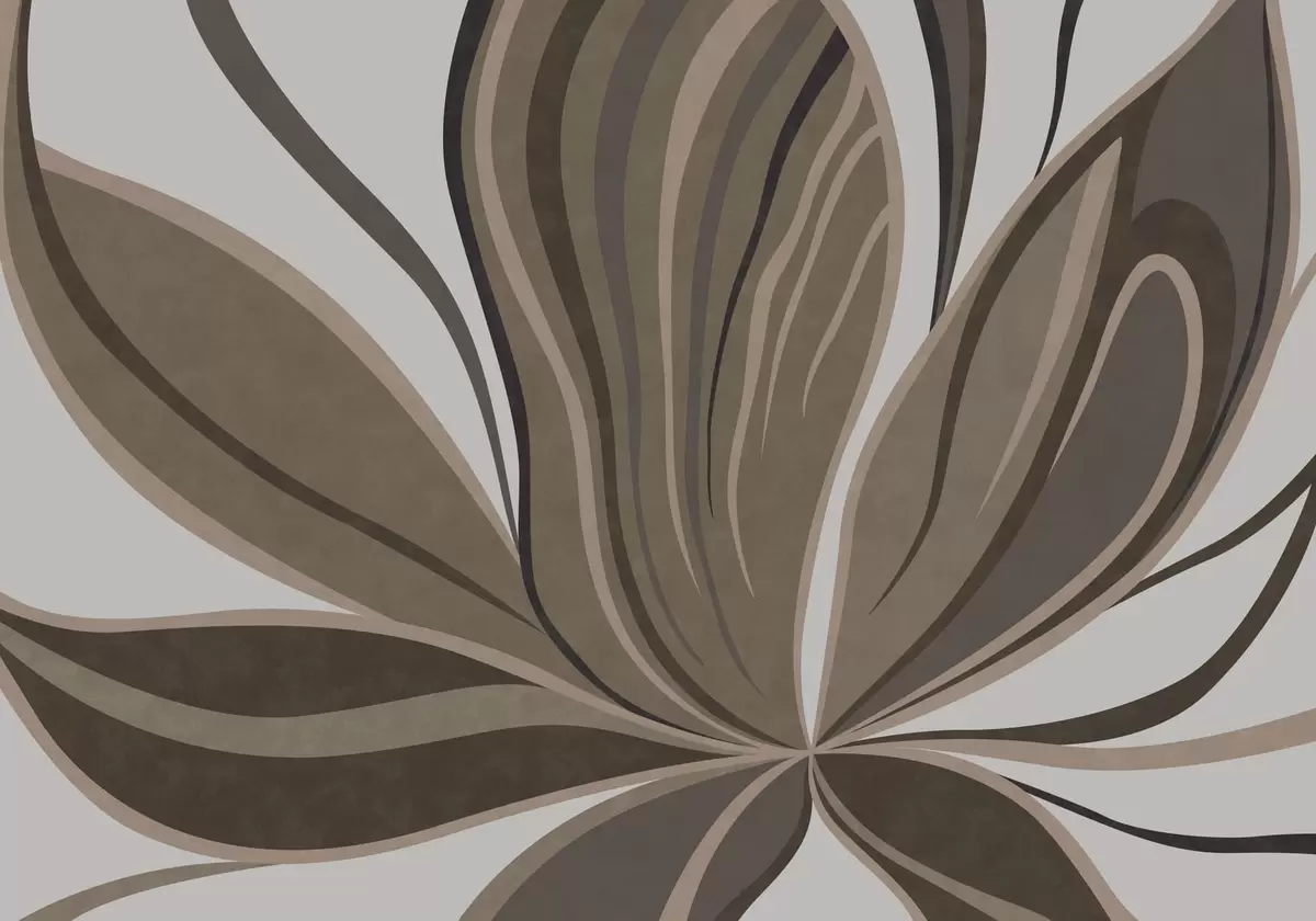 Stylized flower with flowing lines in brown tones - Wall mural (No. w05147)