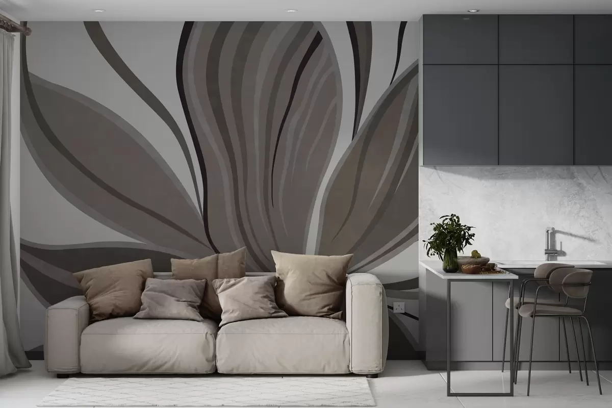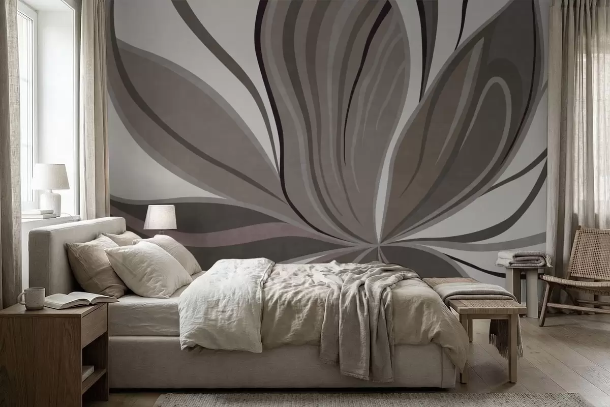 Abstract flower with soft lines in gray beige tones - Wall mural (No. w05147v1)
