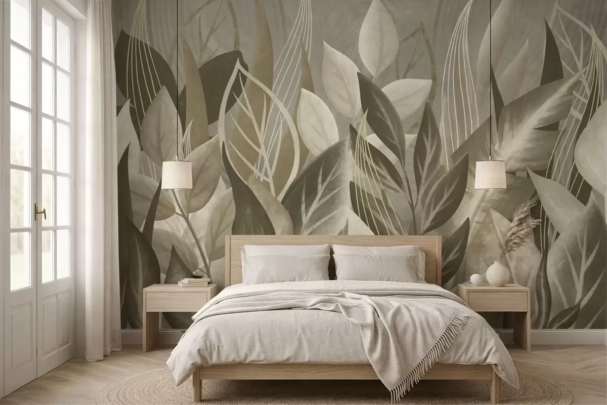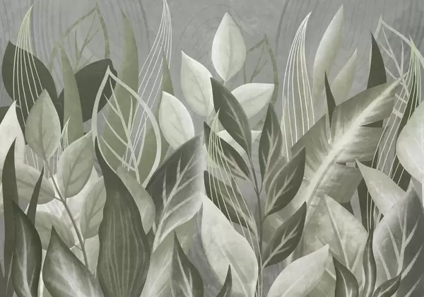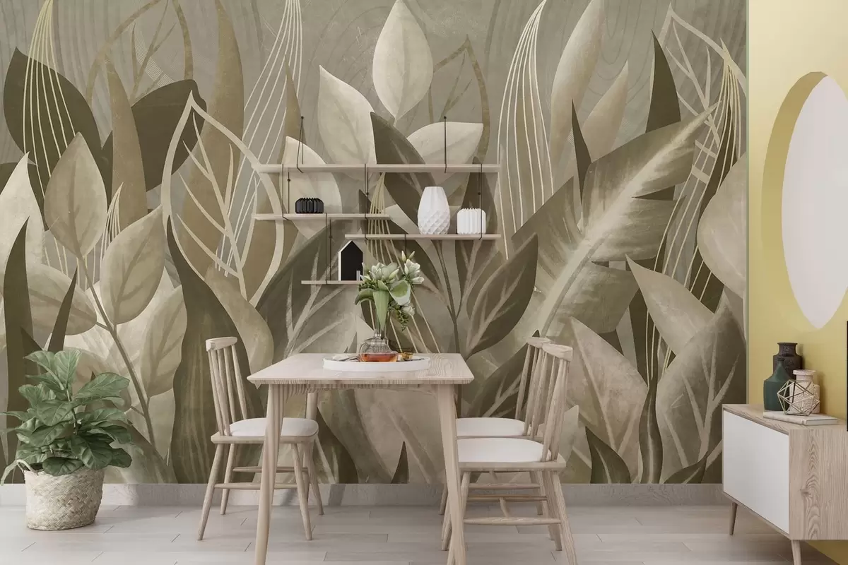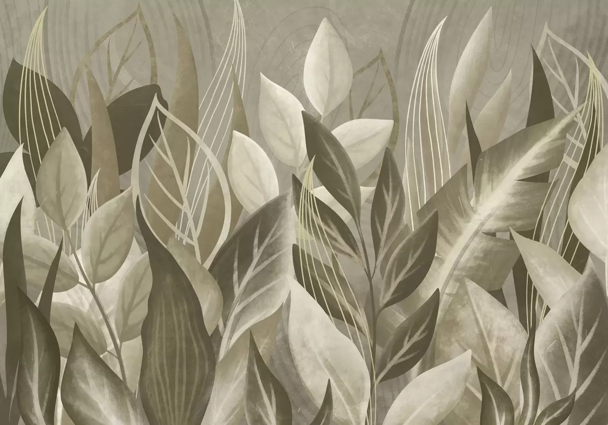 Abstract leaves in beige and green tones - Wall mural (No. w05148)