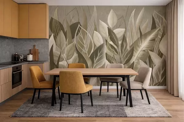 Abstract leaves in beige and green tones - Wall mural (No. w05148)
