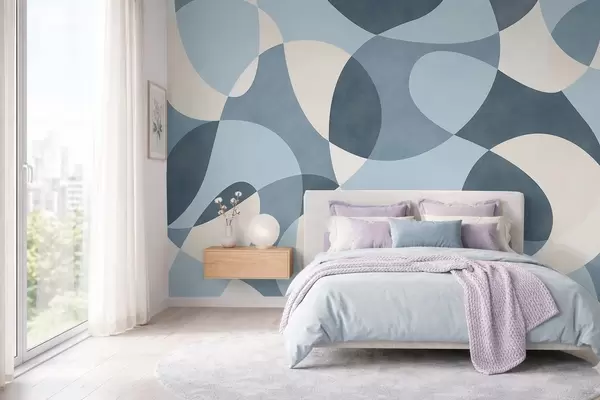 Abstract pattern with rounded shapes in blue tones - Wall mural (No. w05149v2)