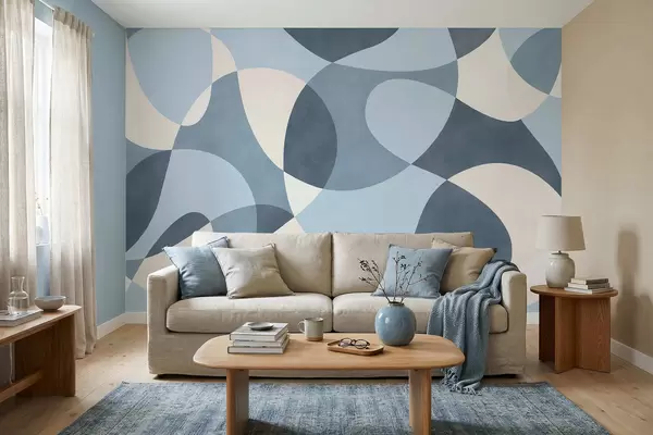Abstract pattern with rounded shapes in blue tones - Wall mural (No. w05149v2)