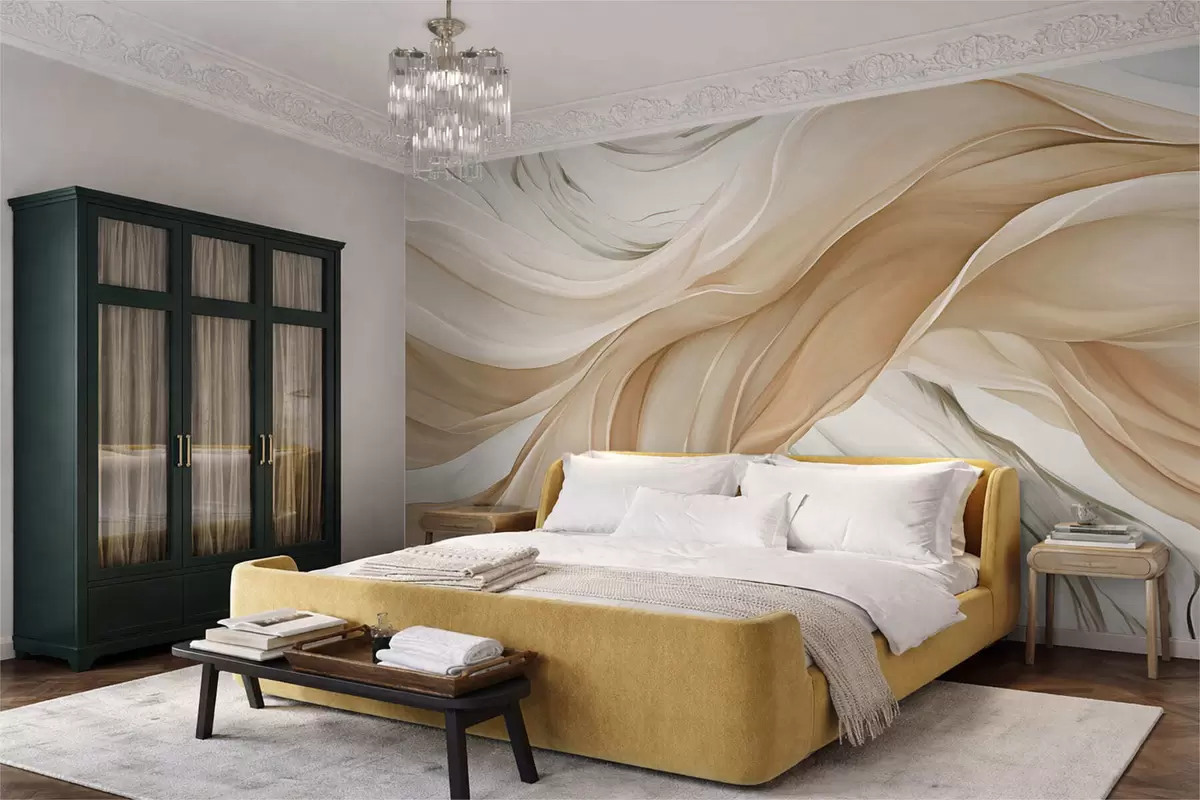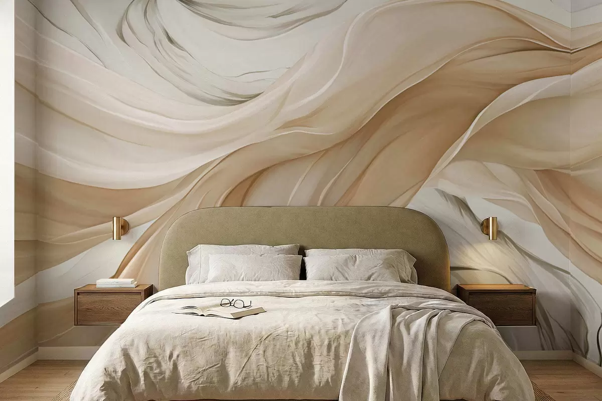 Flowing beige fabric waves - Wall mural (No. w05152)