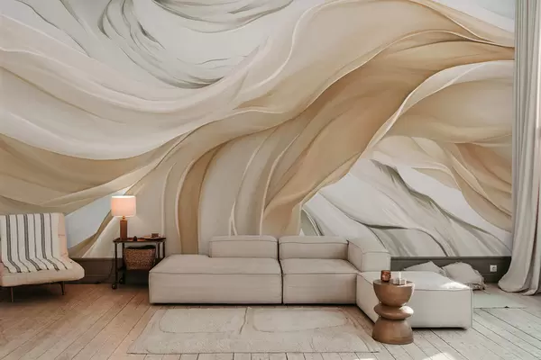 Flowing beige fabric waves - Wall mural (No. w05152)