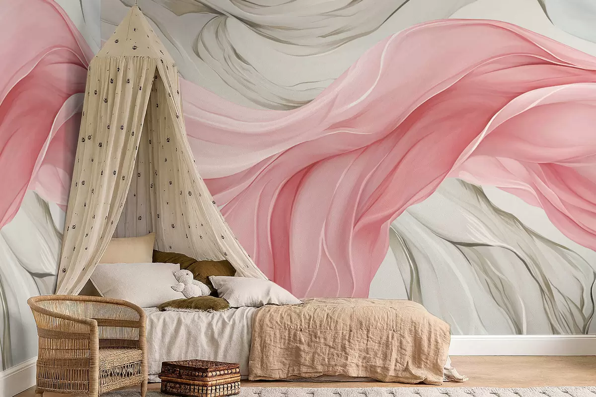 Flowing pink fabric waves - Wall mural (No. w05152v2)