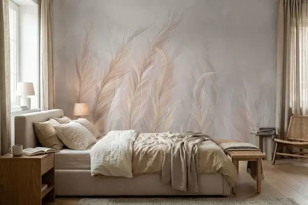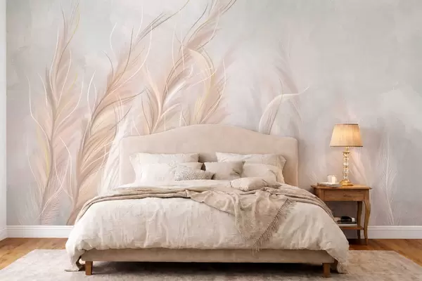 Soft abstract feathers in light neutral tones - Wall mural (No. w05153)