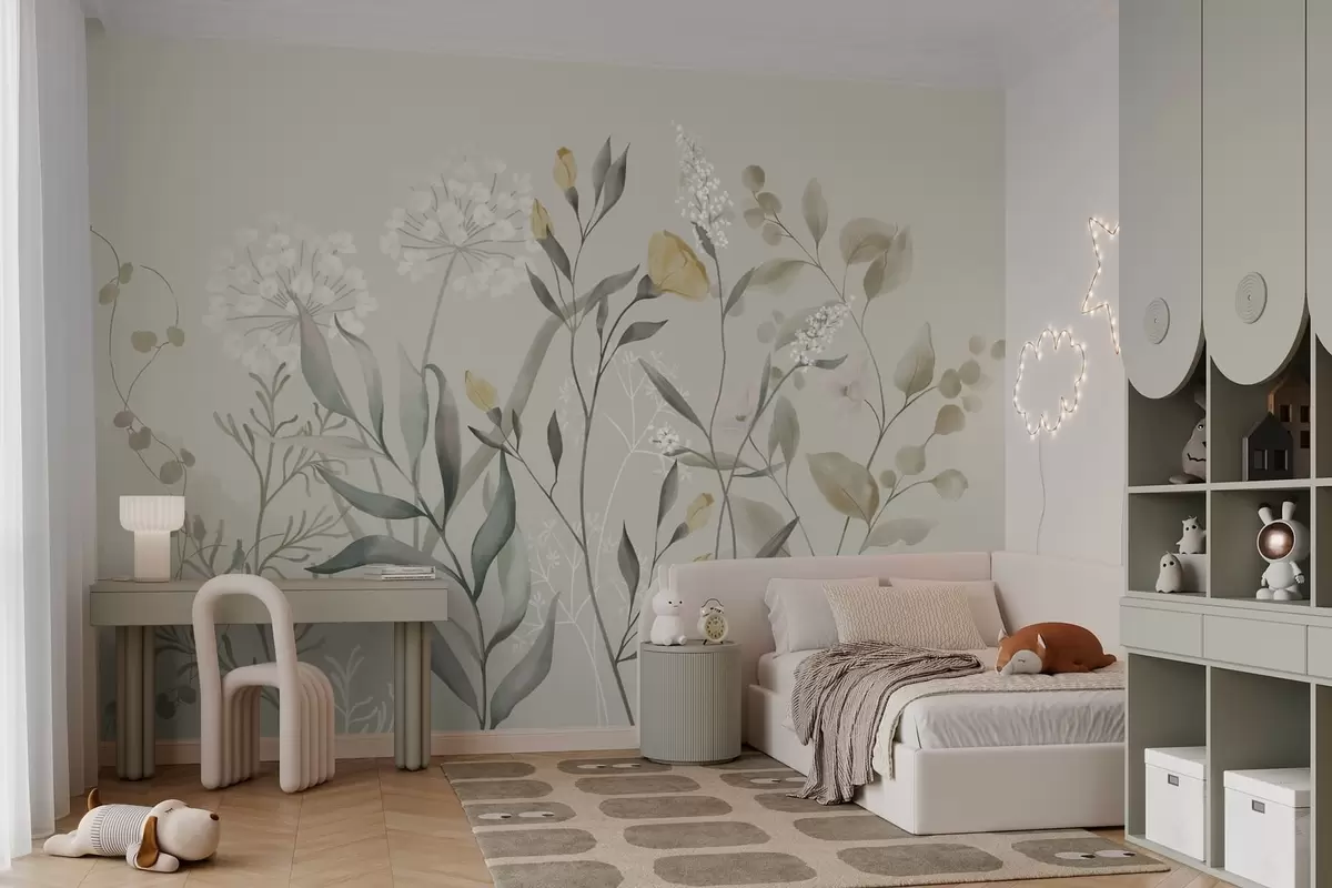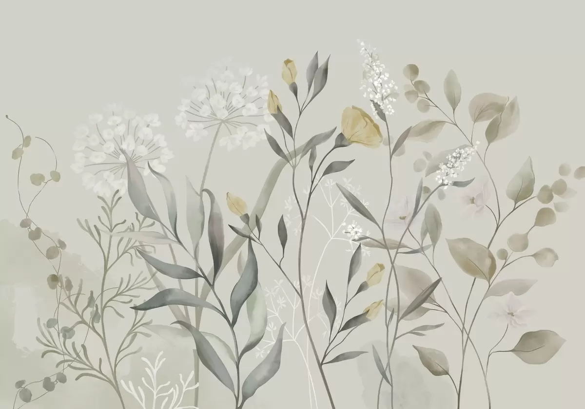 Plants with yellow accents on a light backdrop - Wall mural (No. w05154v1)