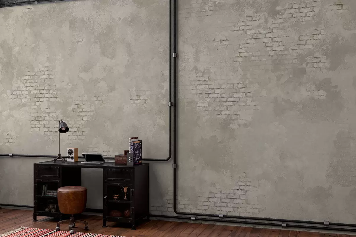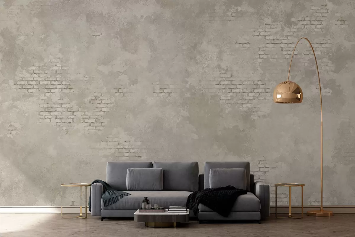wall murals Grunge light plaster with exposed brick patches w05161v1