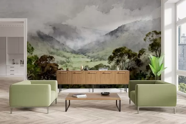 Painted landscape in the fog - Wall mural (No. w05185)