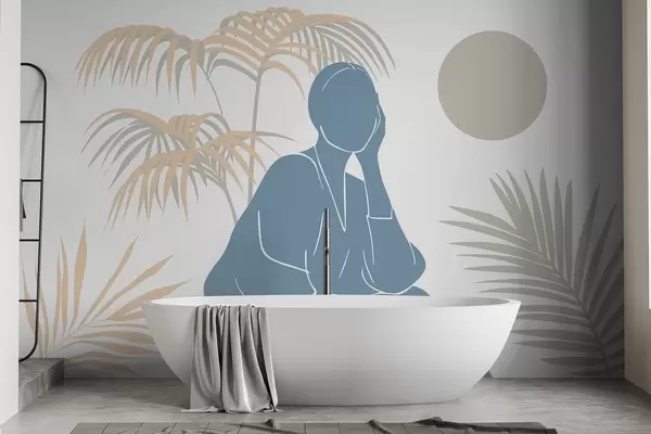 Silhouette of a woman and palm leaves - Wall mural (No. w05190v1)