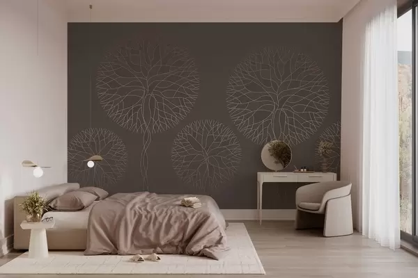 Fantasy linear trees with lush crowns in elegant mocha tones - Wall mural (No. w05213v1)