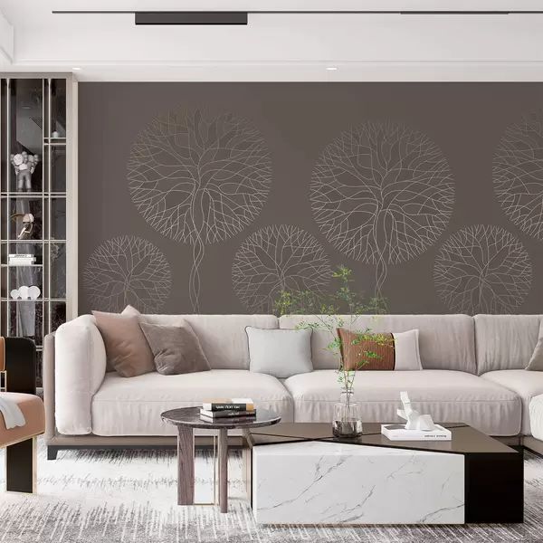 Fantasy linear trees with lush crowns in elegant mocha tones - Wall mural (No. w05213v1)