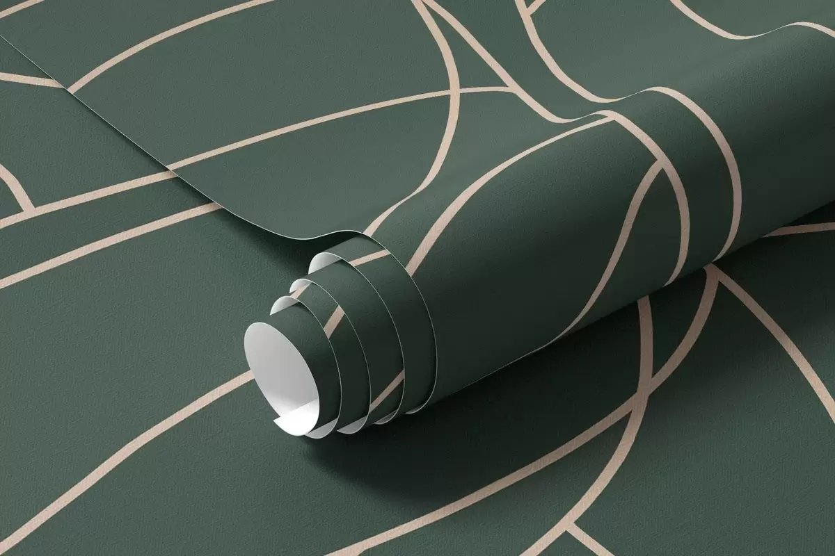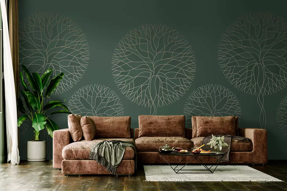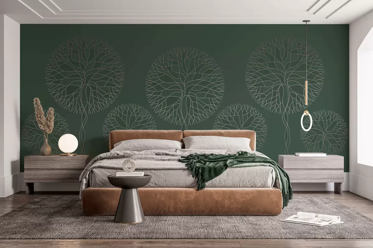 Fantasy linear trees with lush crowns in elegant dark green tones - Wall mural (No. w05213v2)