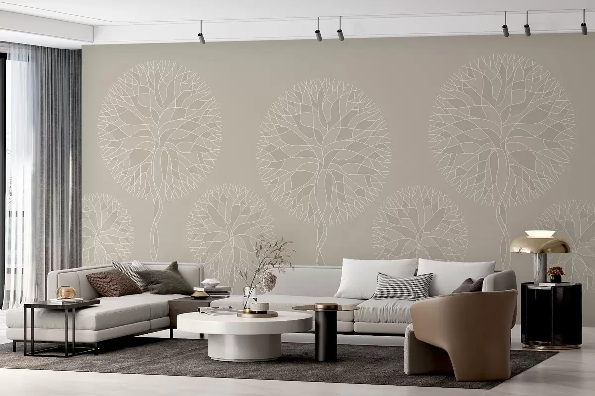 Fantasy linear trees with lush crowns in beige tones - Wall mural (No. w05213v3)