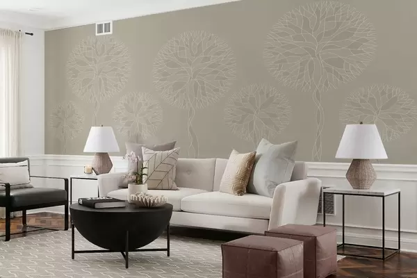 Fantasy linear trees with lush crowns in beige tones - Wall mural (No. w05213v3)