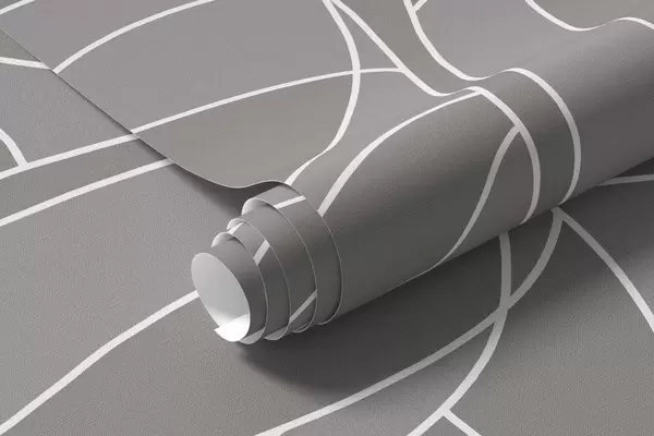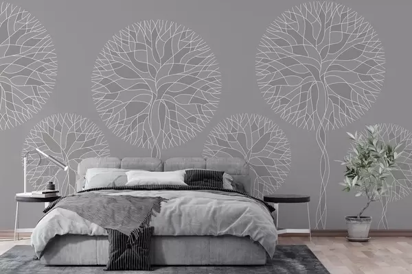 Fantasy linear trees with lush crowns in medium grey tones - Wall mural (No. w05213v5)