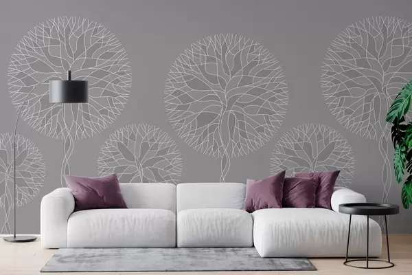 Fantasy linear trees with lush crowns in medium grey tones - Wall mural (No. w05213v5)