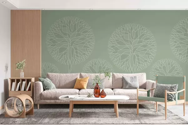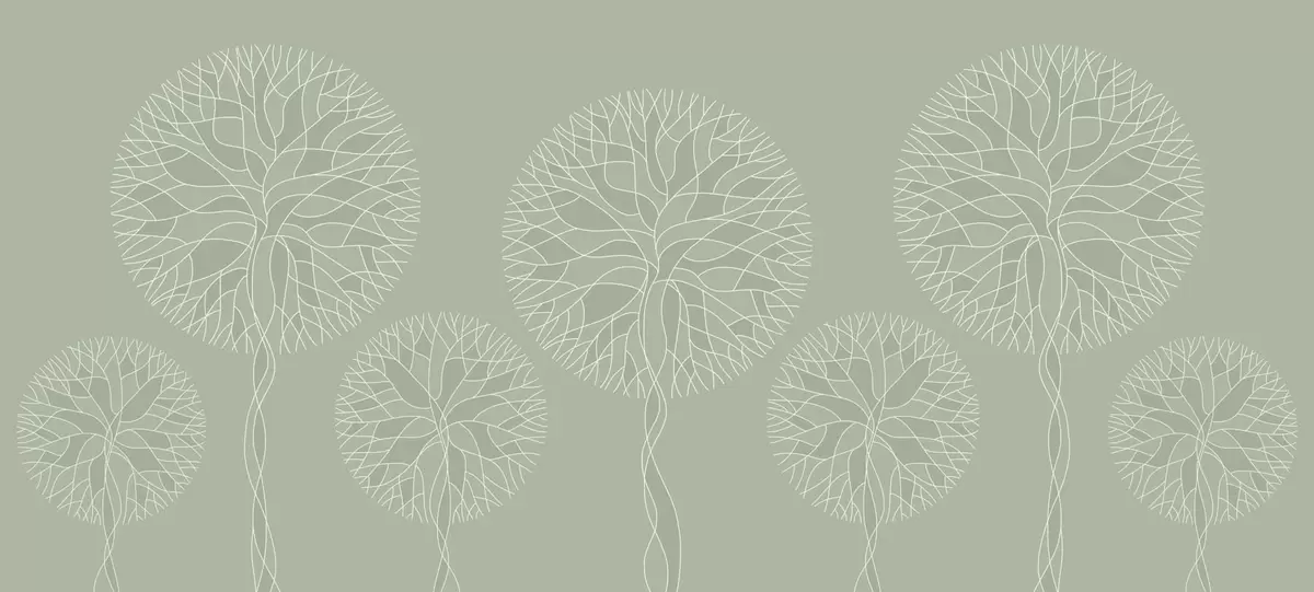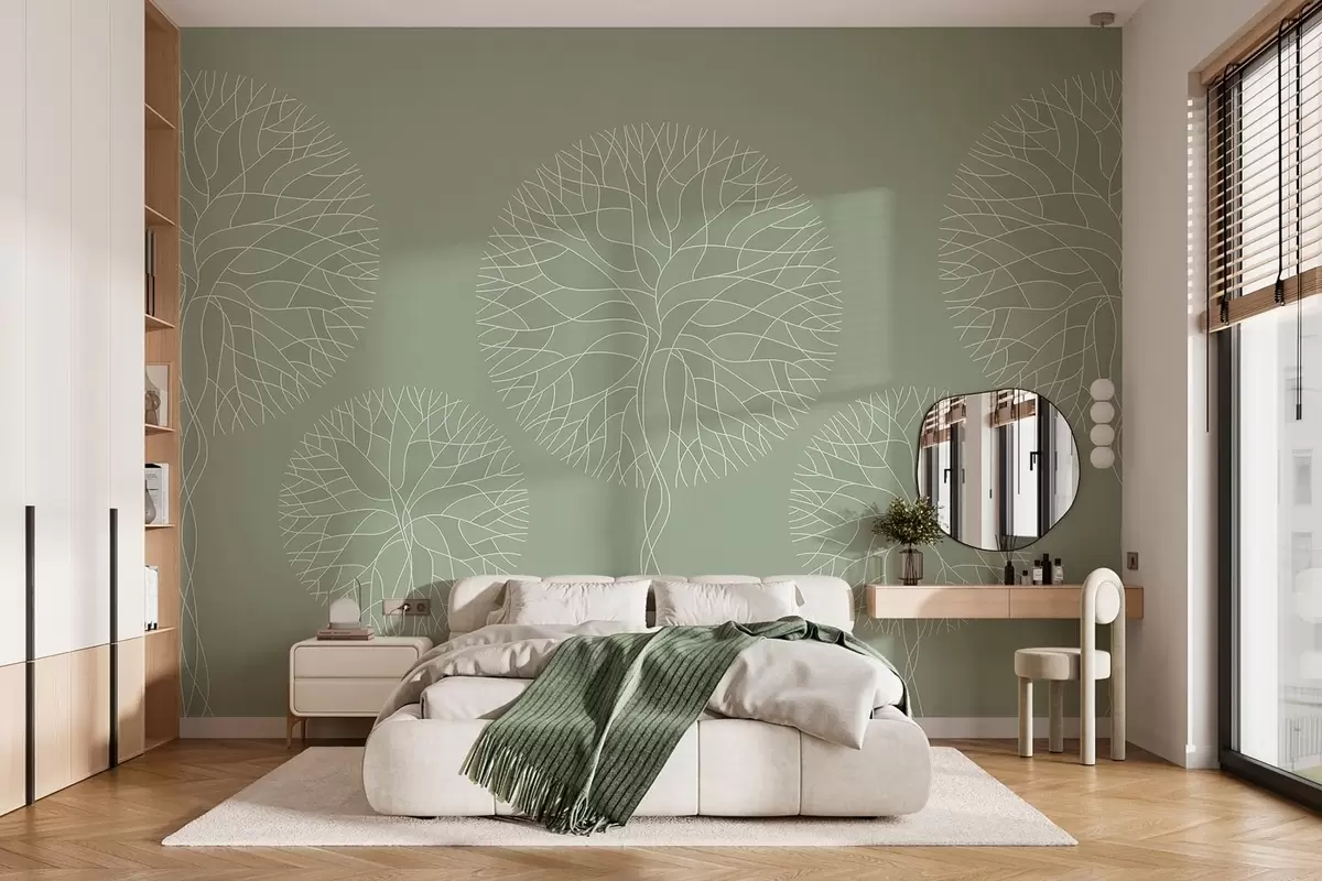 Fantasy linear trees with lush crowns in light green tones - Wall mural (No. w05213v6)