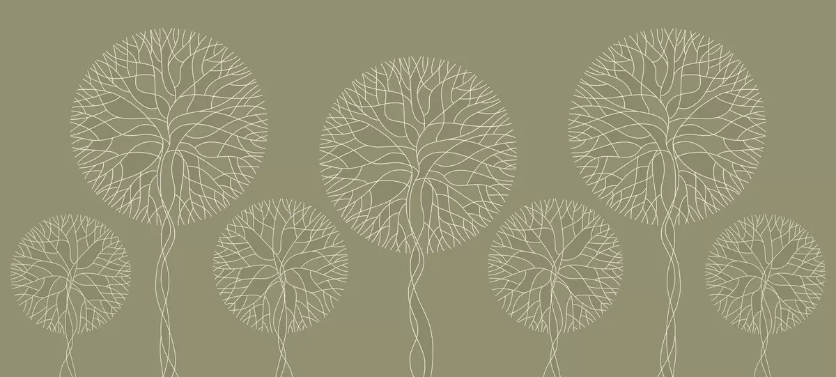 Fantasy linear trees with lush crowns in khaki tones - Wall mural (No. w05213v7)